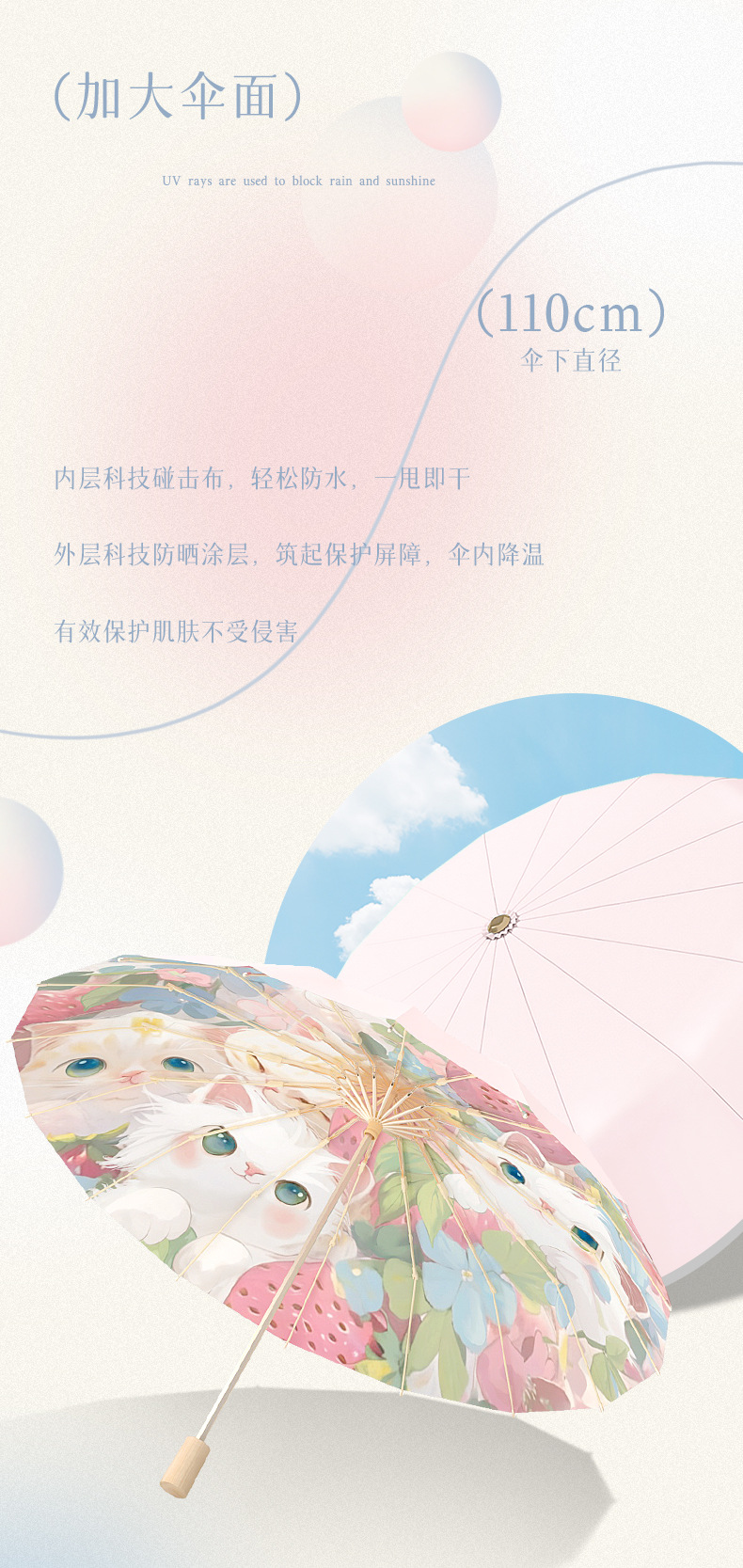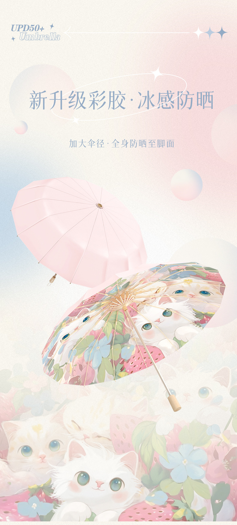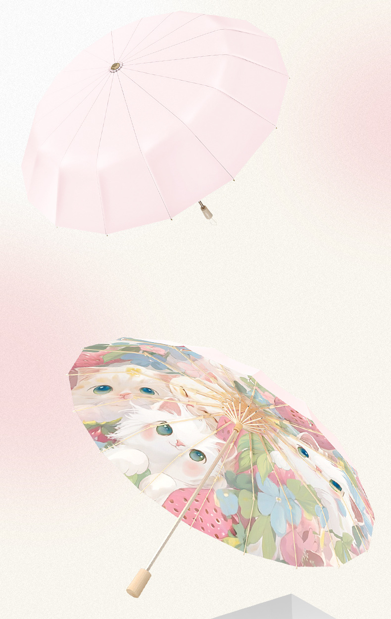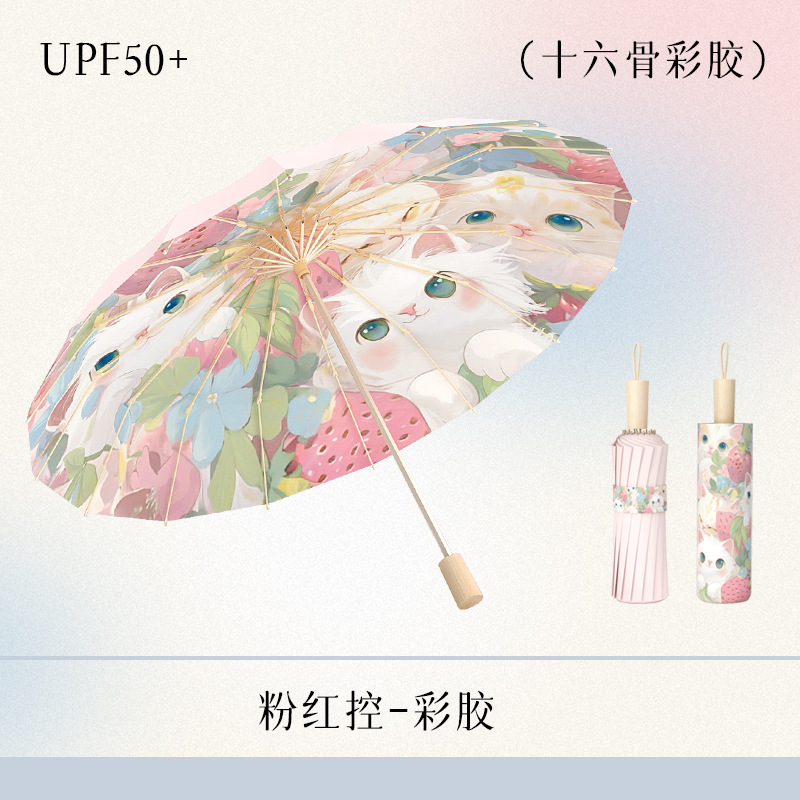 우산 도매 핑크톤 프레쉬 프린트 70% off 컬러 고무 코팅 야외용 차양 우산 자외선 차단 우산 접이식 바람막이 우산