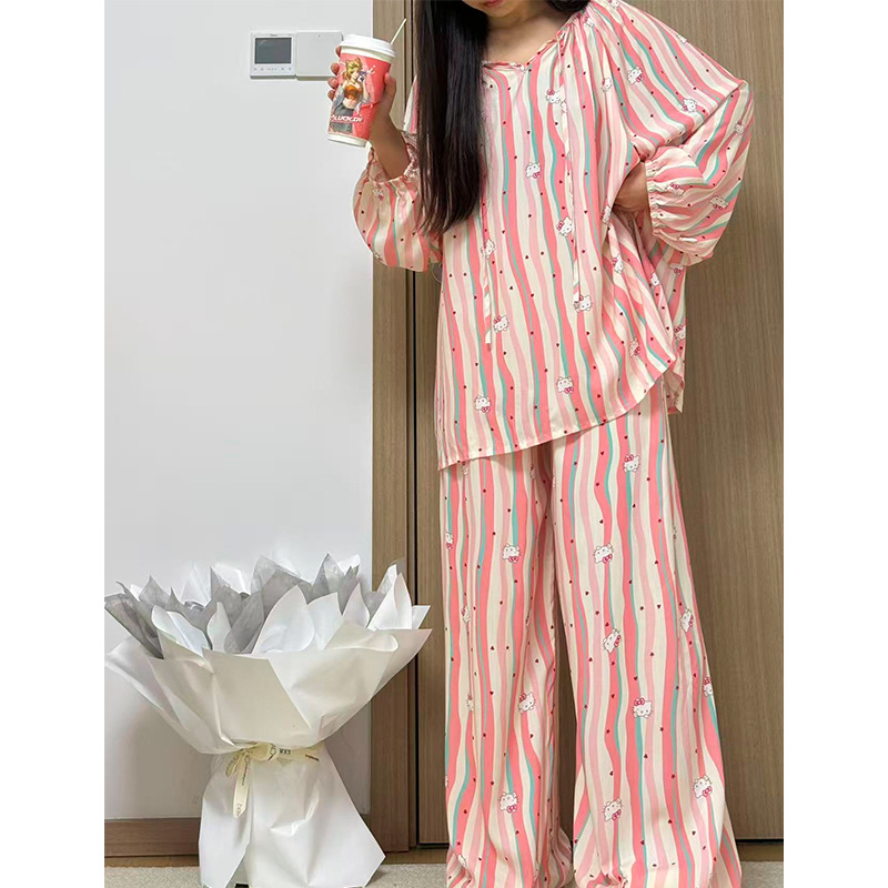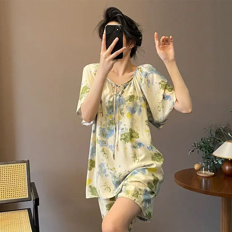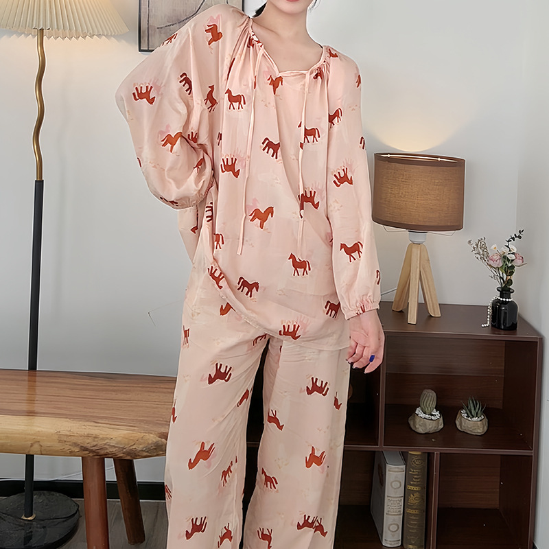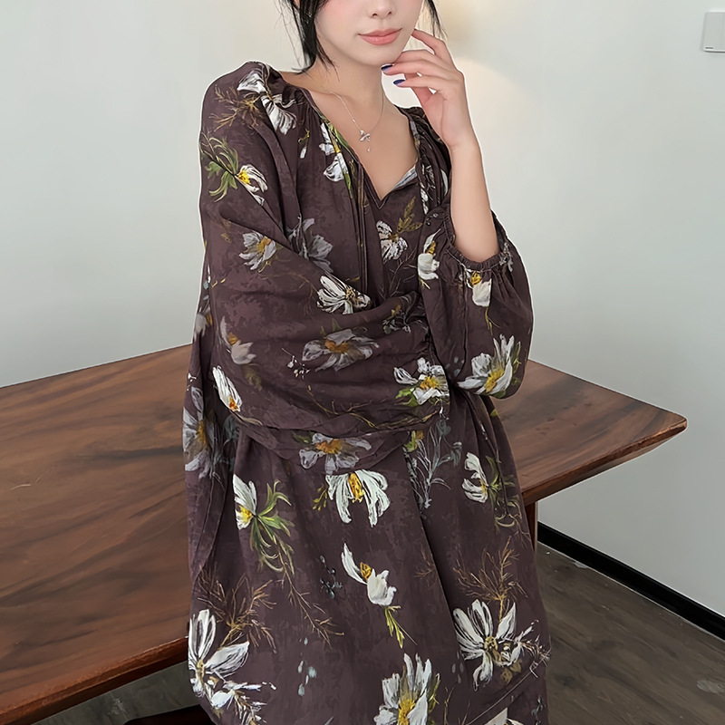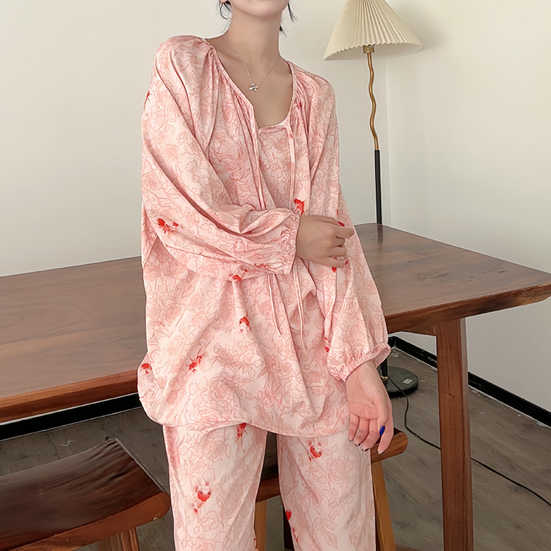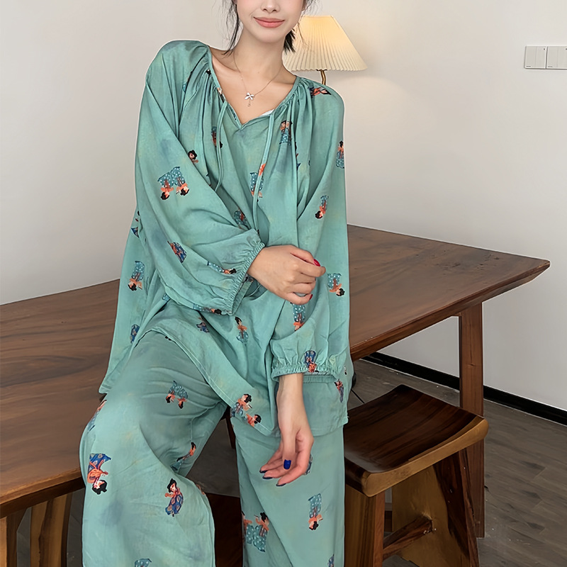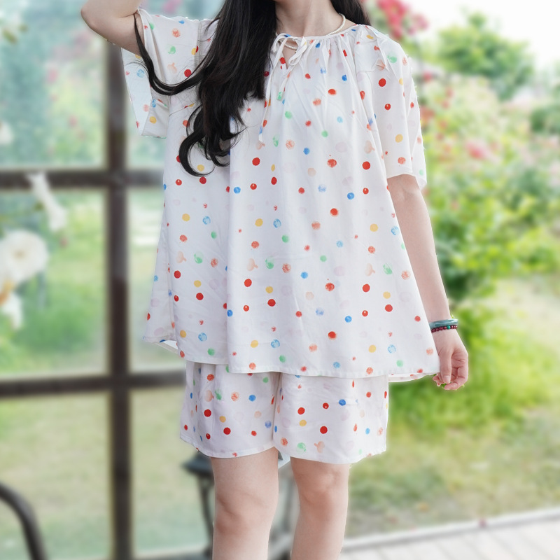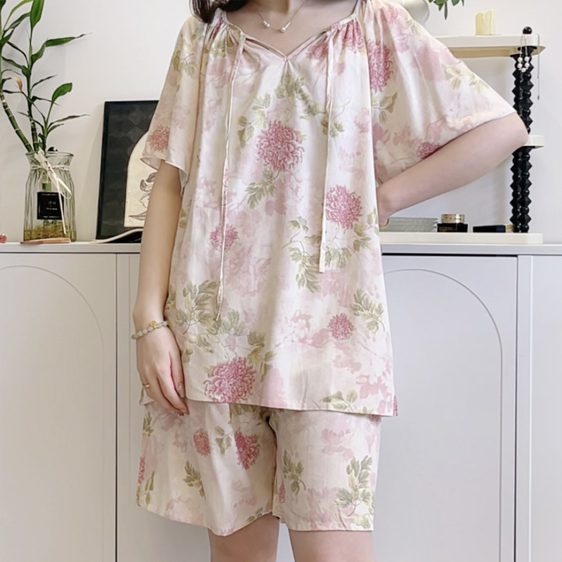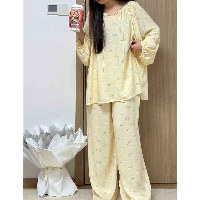 봄과 가을면 실크 파자마 여성의 여름 얇은 프린트 바지 느슨한 플러스 사이즈 통통녀 착용 가능한 가정복 200kg스토어 가기