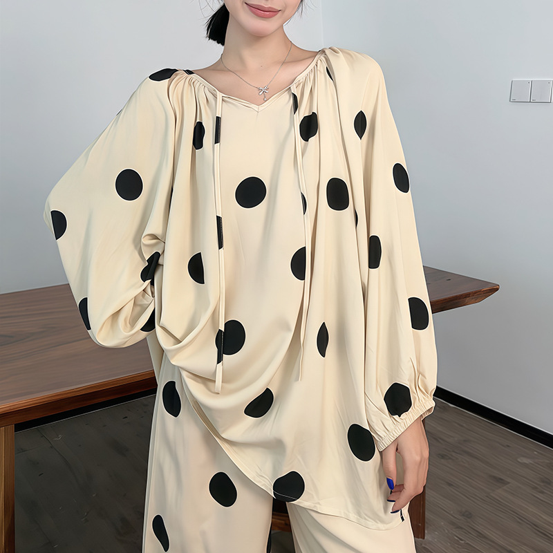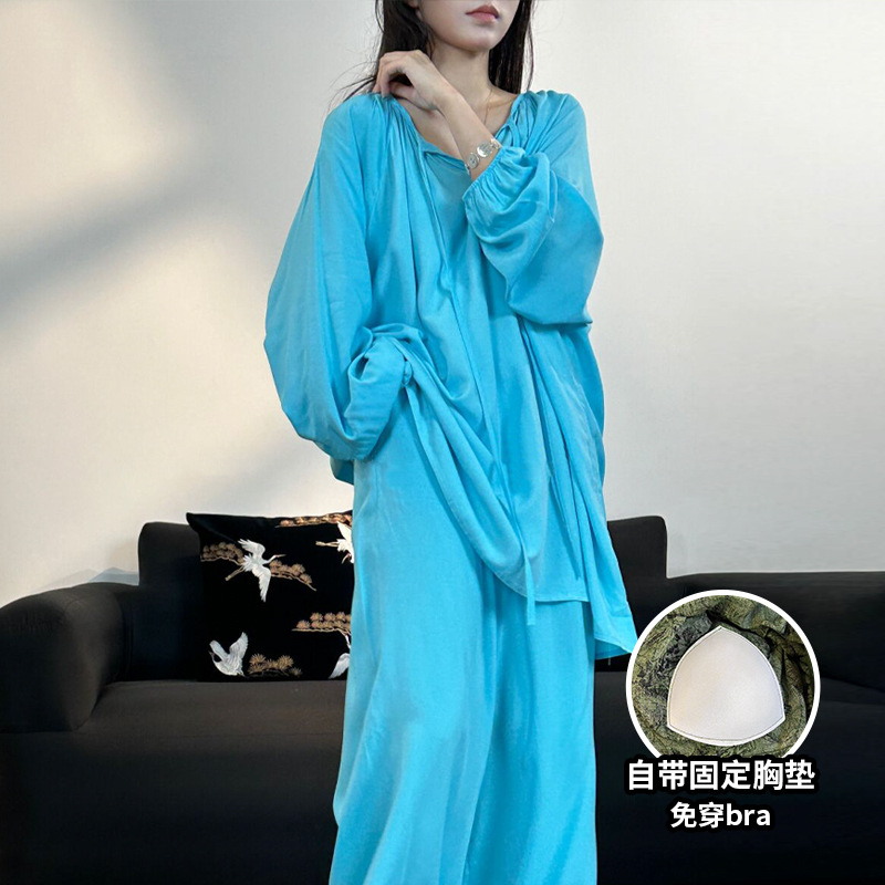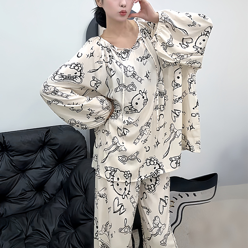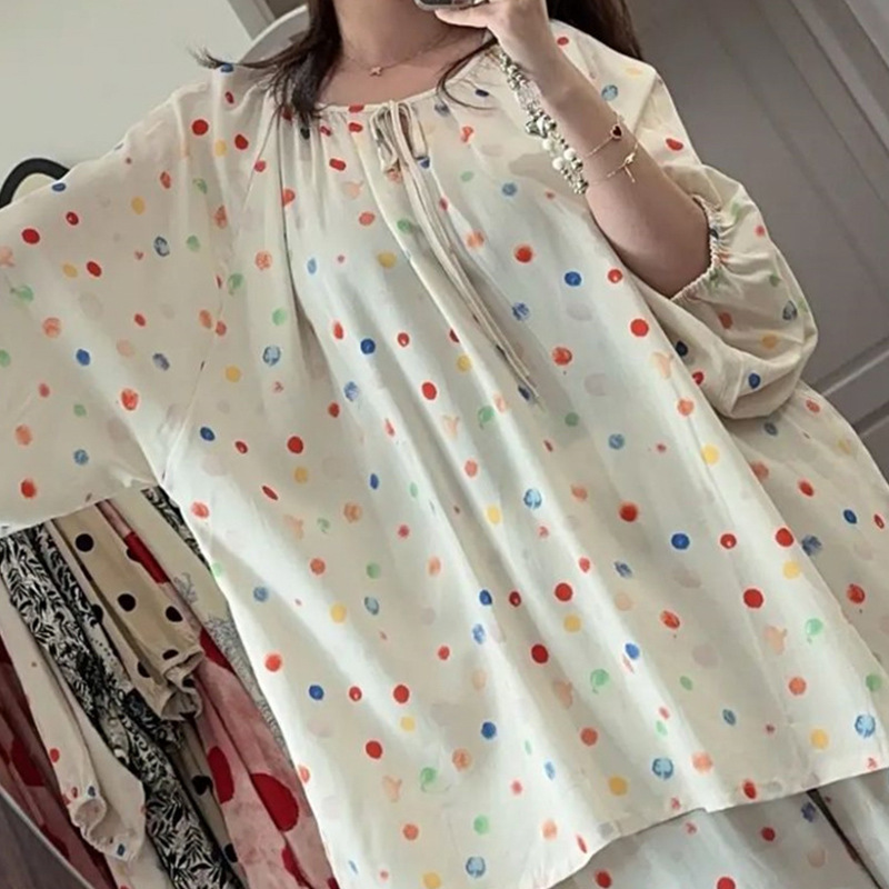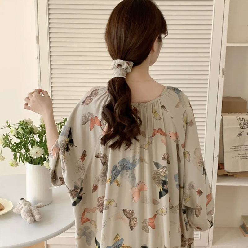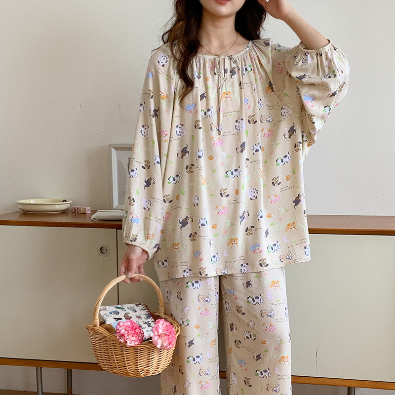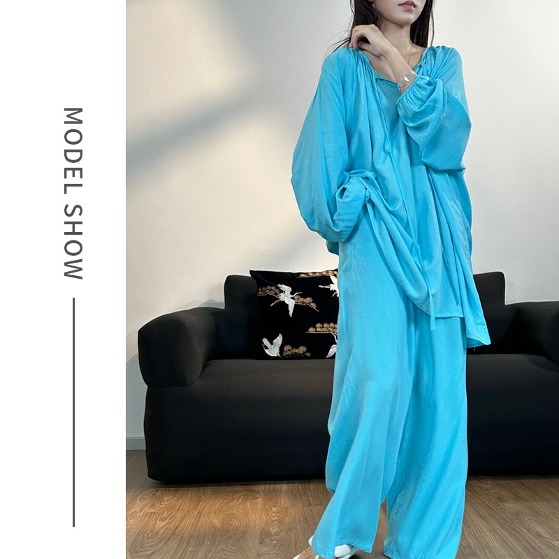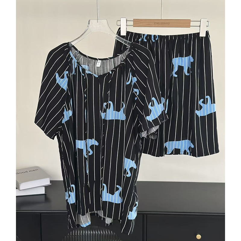 봄과 가을면 실크 파자마 여성의 여름 얇은 프린트 바지 느슨한 플러스 사이즈 통통녀 착용 가능한 가정복 200kg스토어 가기