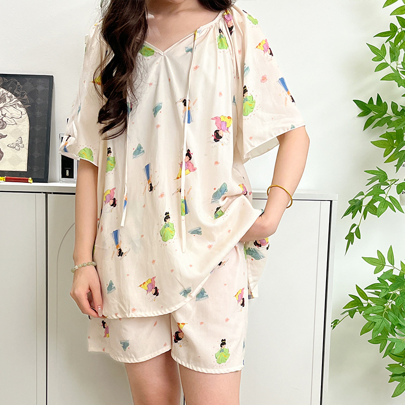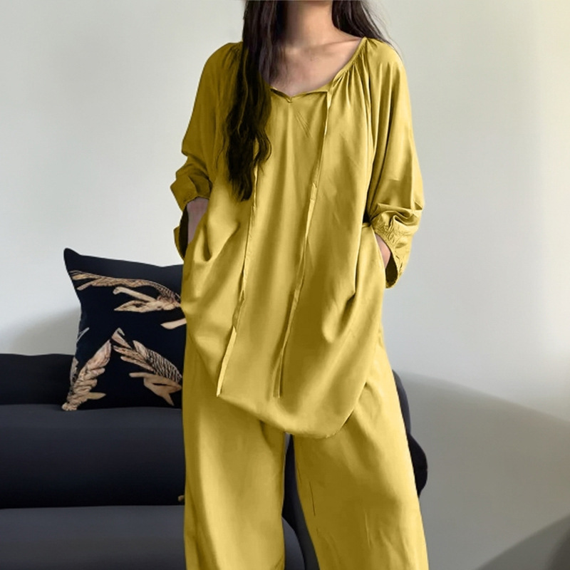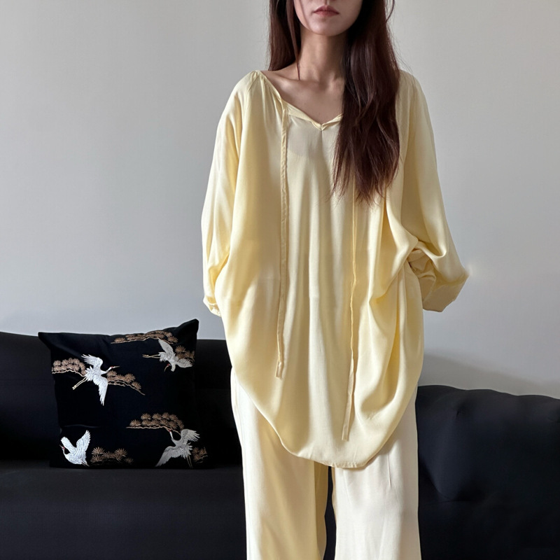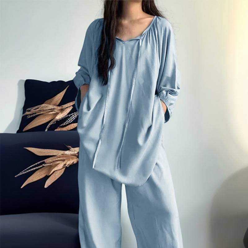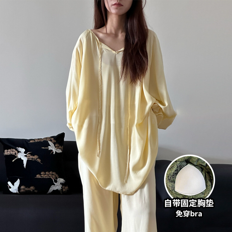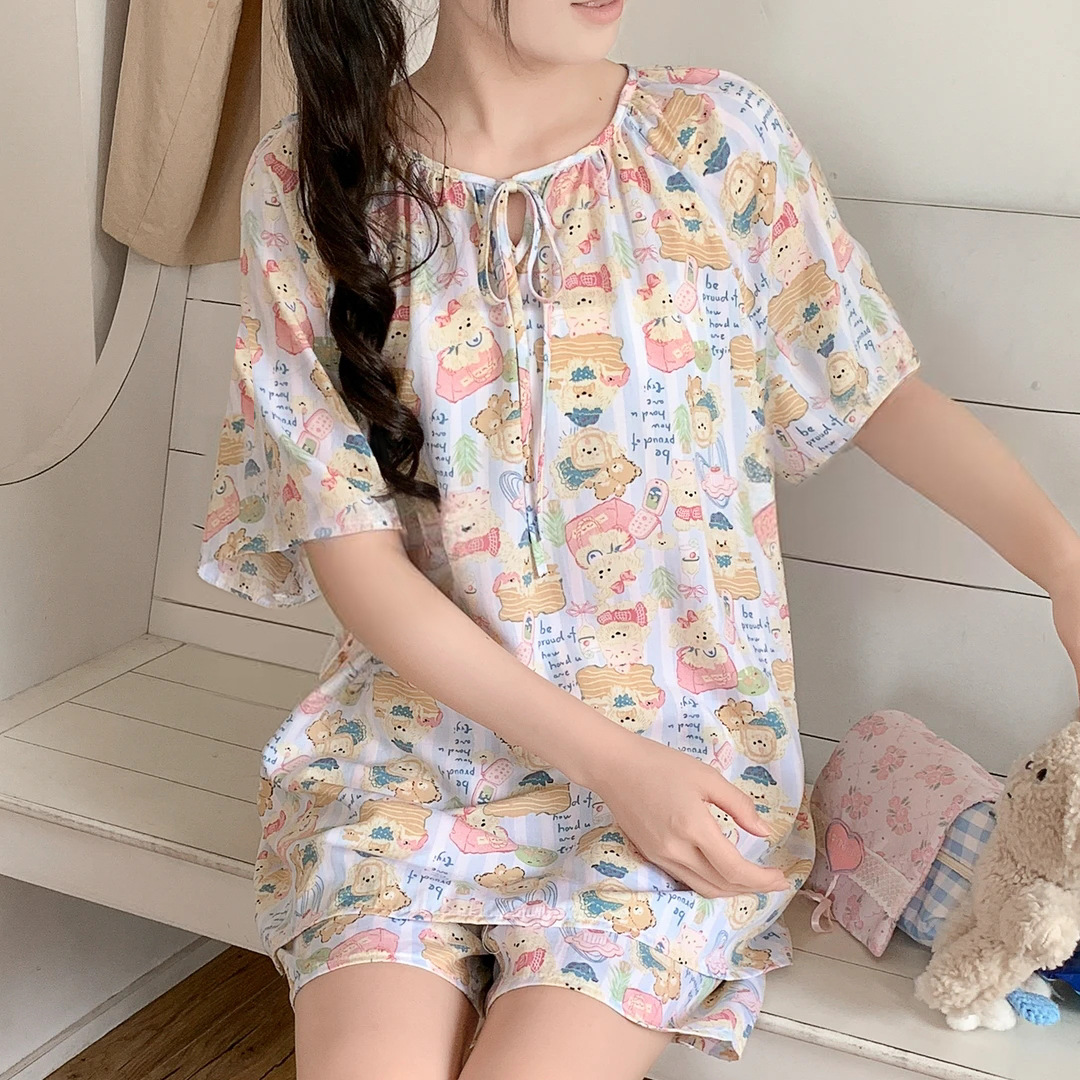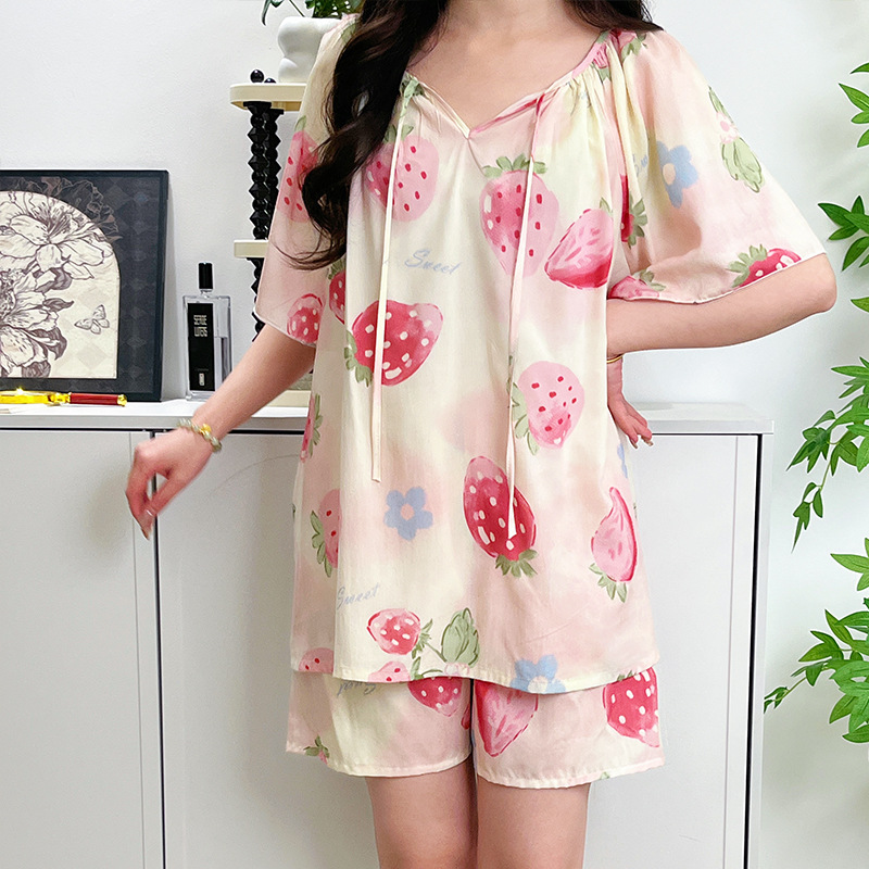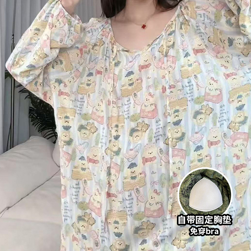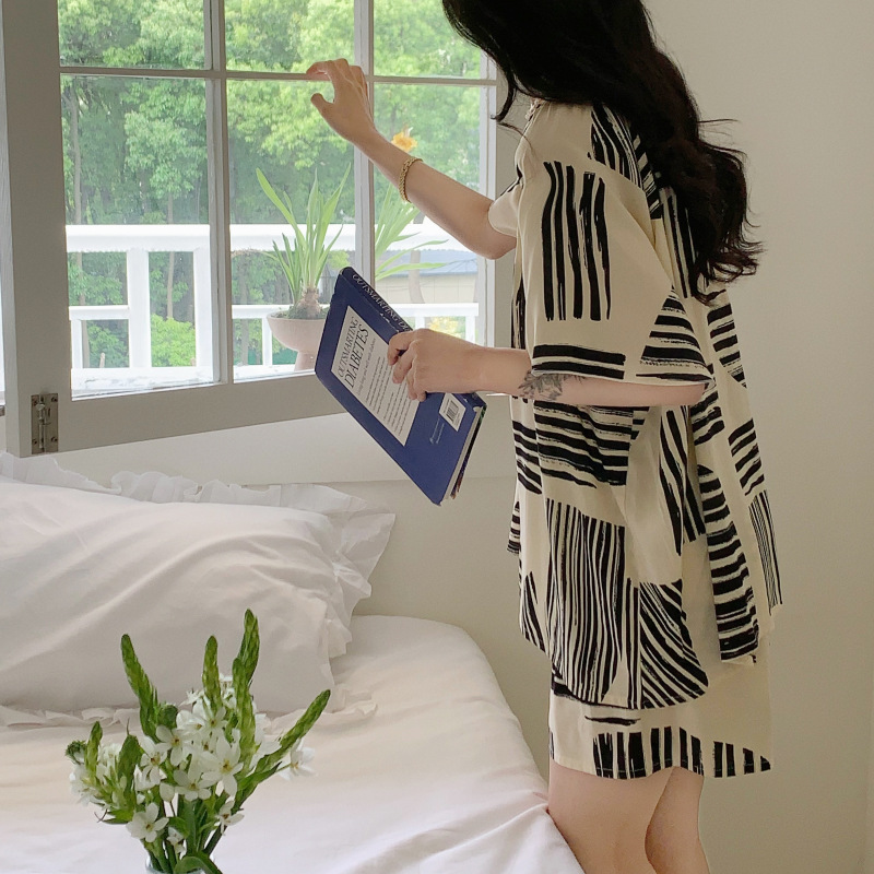 봄과 가을면 실크 파자마 여성의 여름 얇은 프린트 바지 느슨한 플러스 사이즈 통통녀 착용 가능한 가정복 200kg스토어 가기