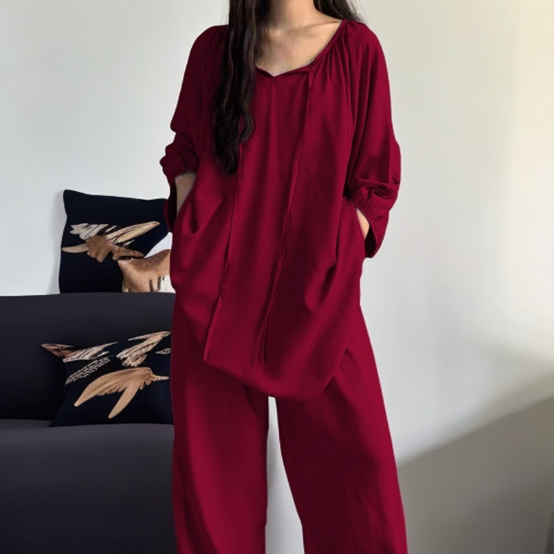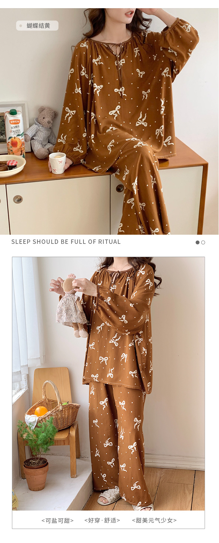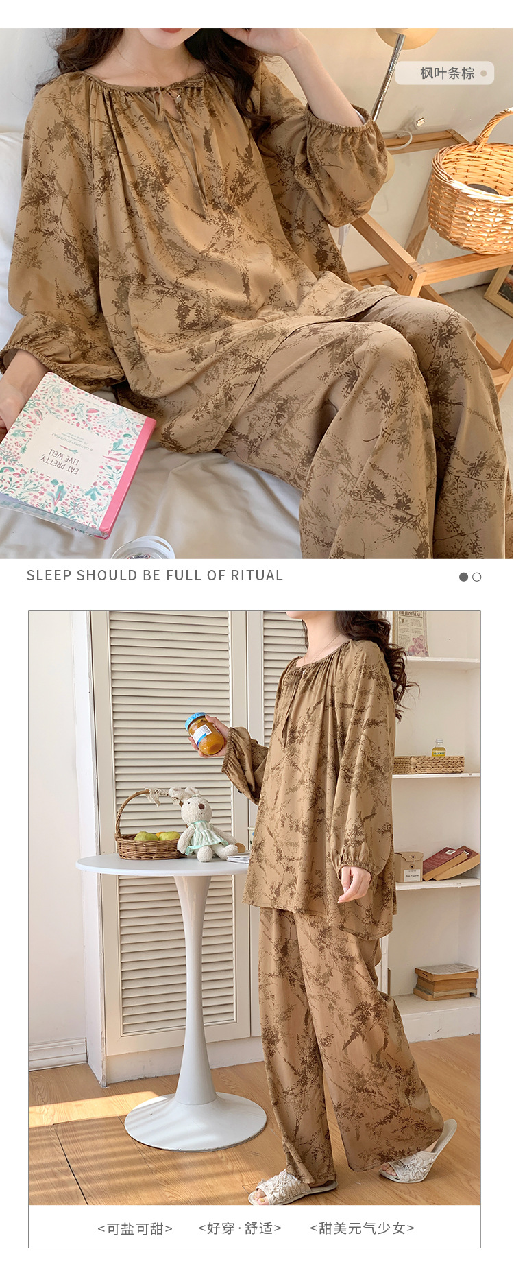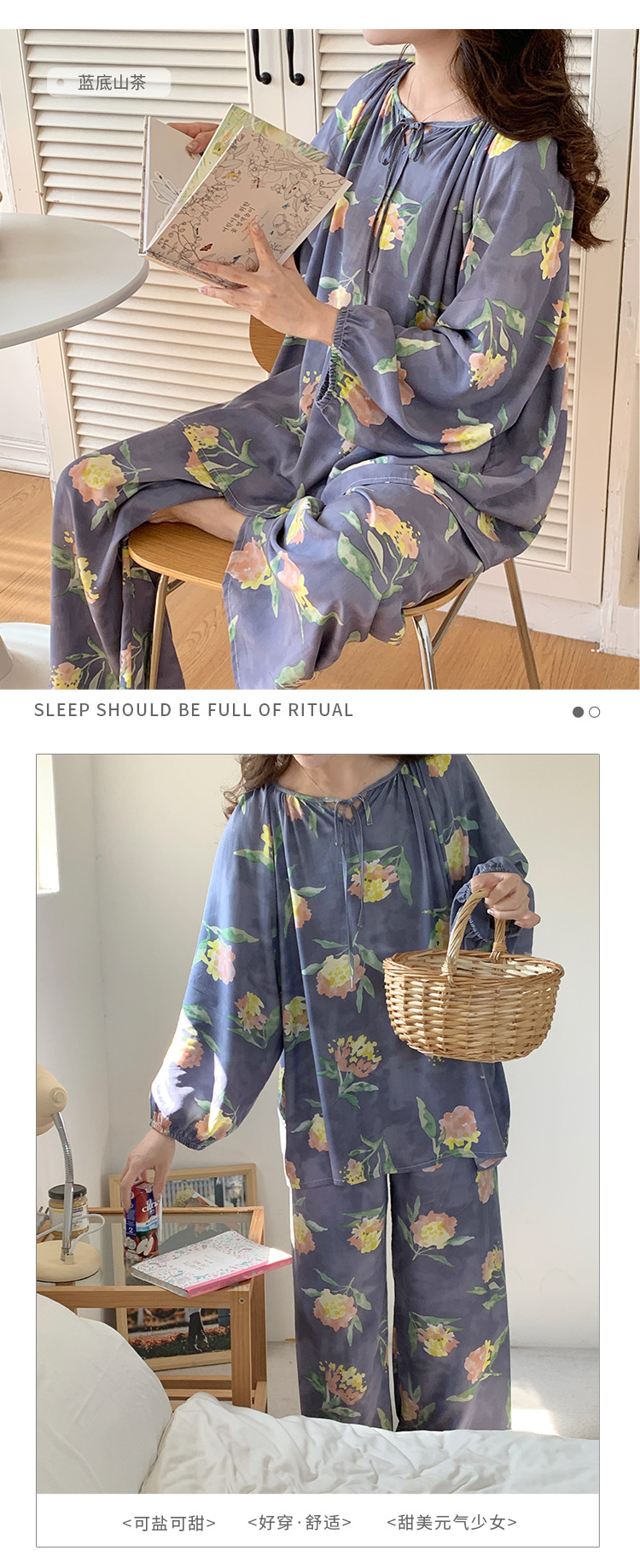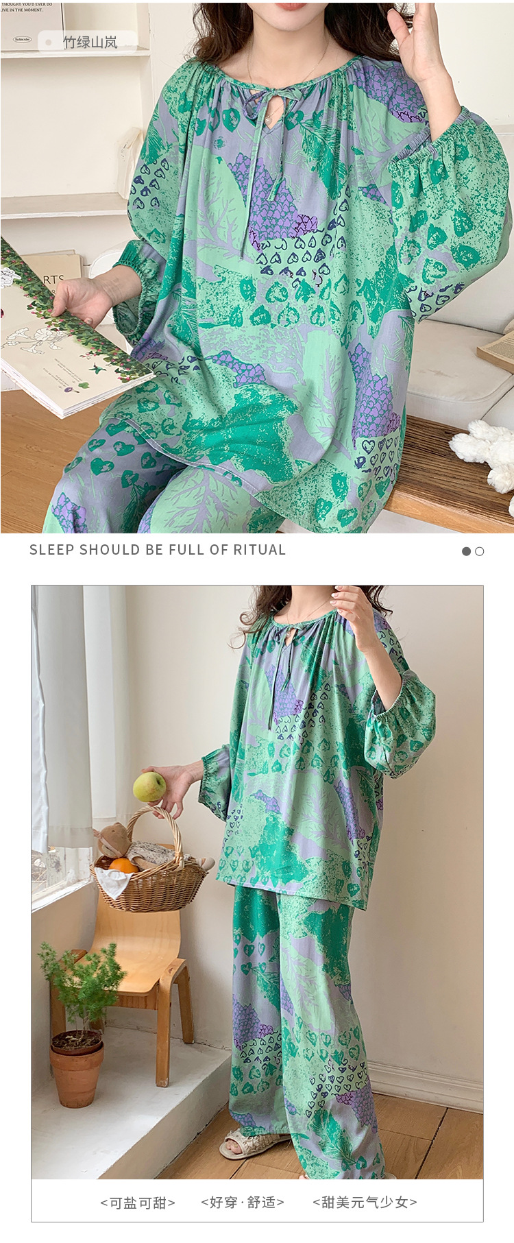 봄과 가을면 실크 파자마 여성의 여름 얇은 프린트 바지 느슨한 플러스 사이즈 통통녀 착용 가능한 가정복 200kg스토어 가기