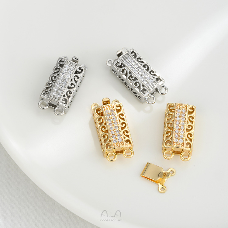 색상 유지 14K 골드 상감 지르콘 직사각형 더블 행 버클 DIY 수제 진주 목걸이 팔찌 보석 버클 액세서리