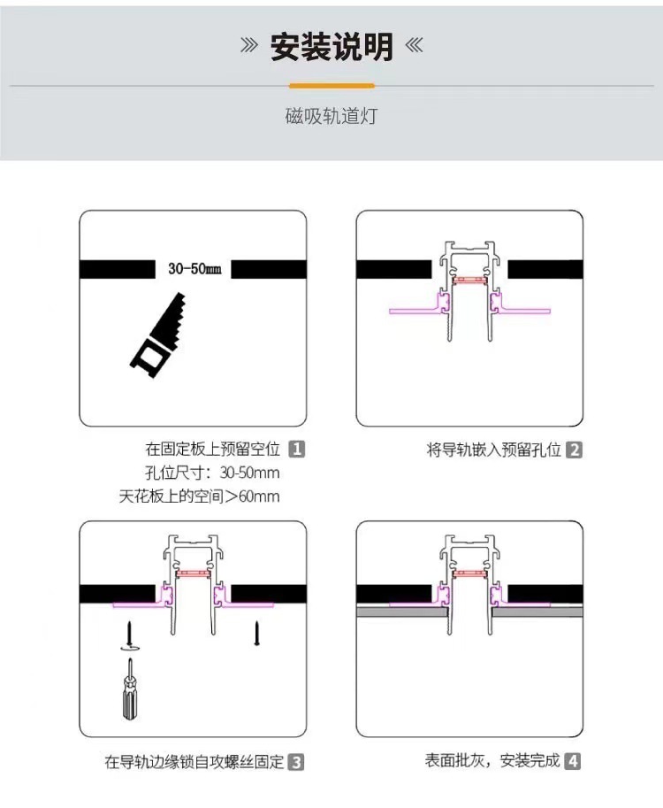 가정용 스마트 화이트 마그네틱 트랙 라이트 임베디드 숨겨진 LED 투광 라이트 오픈 마운트 쇼트 트랙 메인 라이트없이스토어 가기