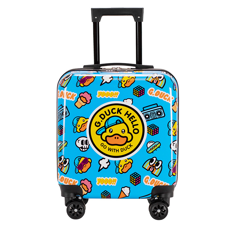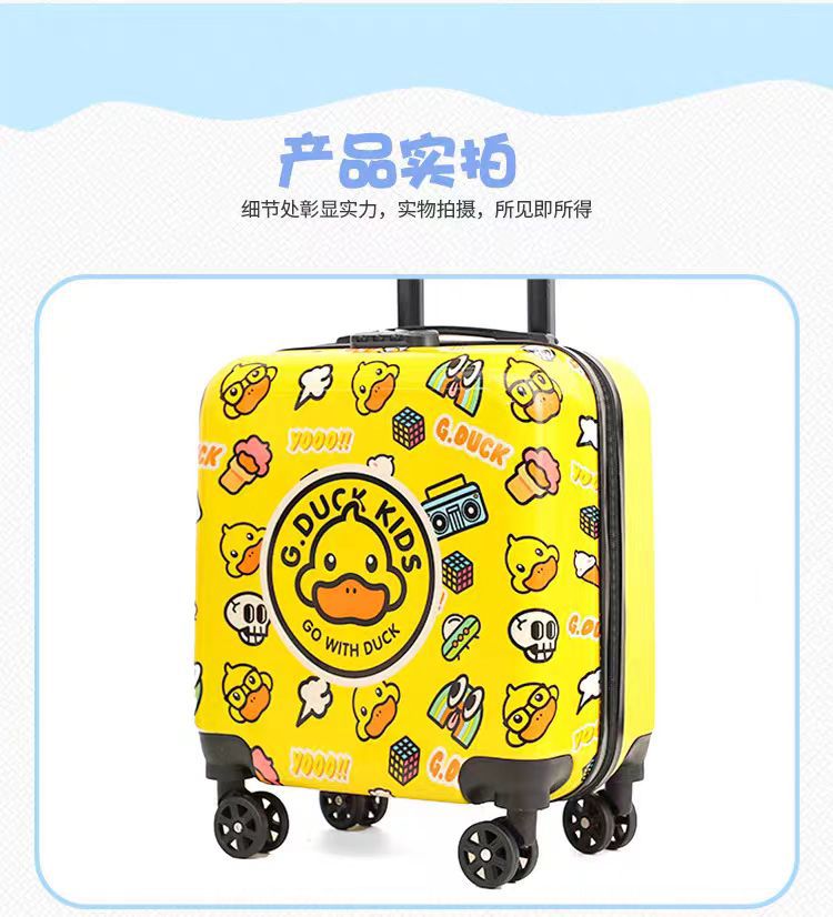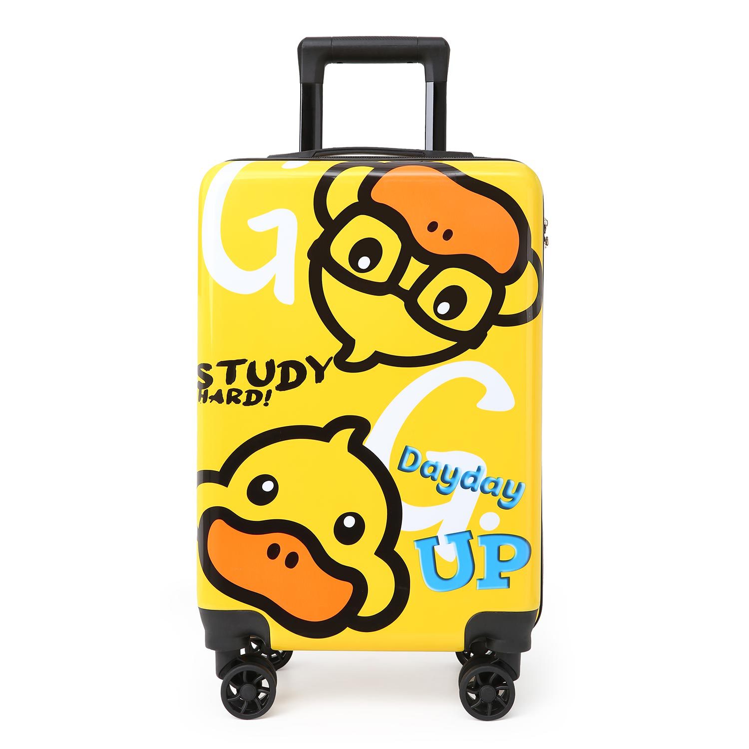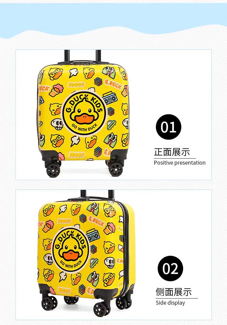 작은 아기 산책, 귀여운 노란색 오리 가방, 어린이 트롤리 케이스, 18인치 범용 휠 비밀번호 잠금 여행용 캐리어스토어 가기