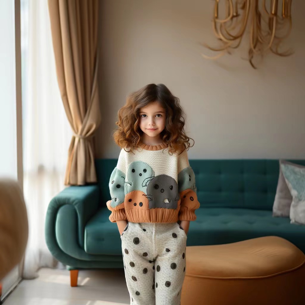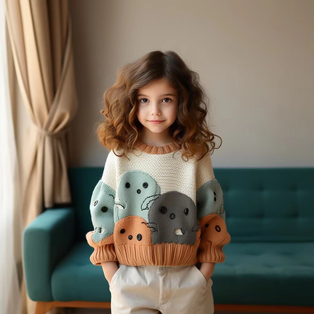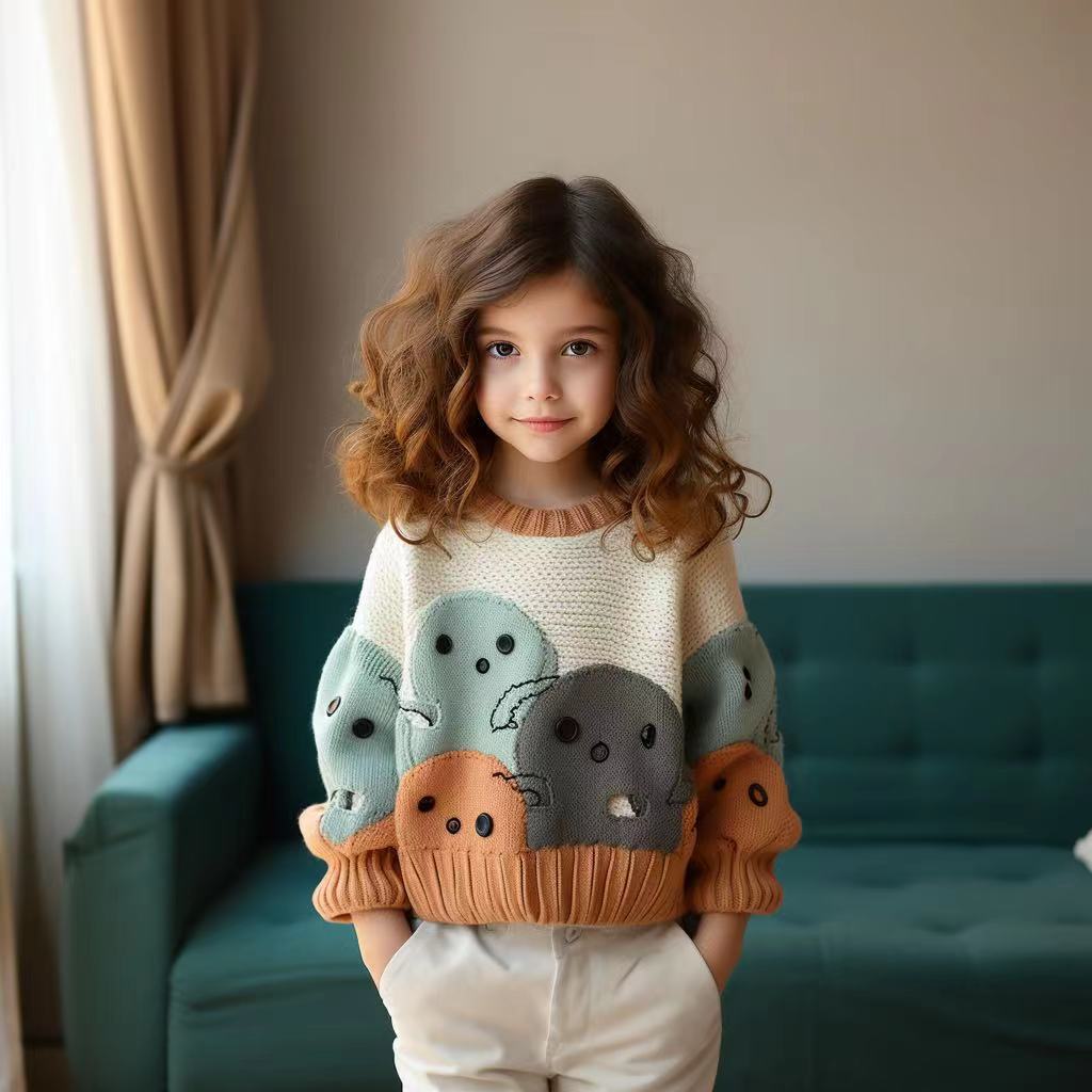 2024 만화 소년 소녀 스웨터 겨울 스웨터 디자인 아트 온라인 레드 트렌드 [사용자 정의]