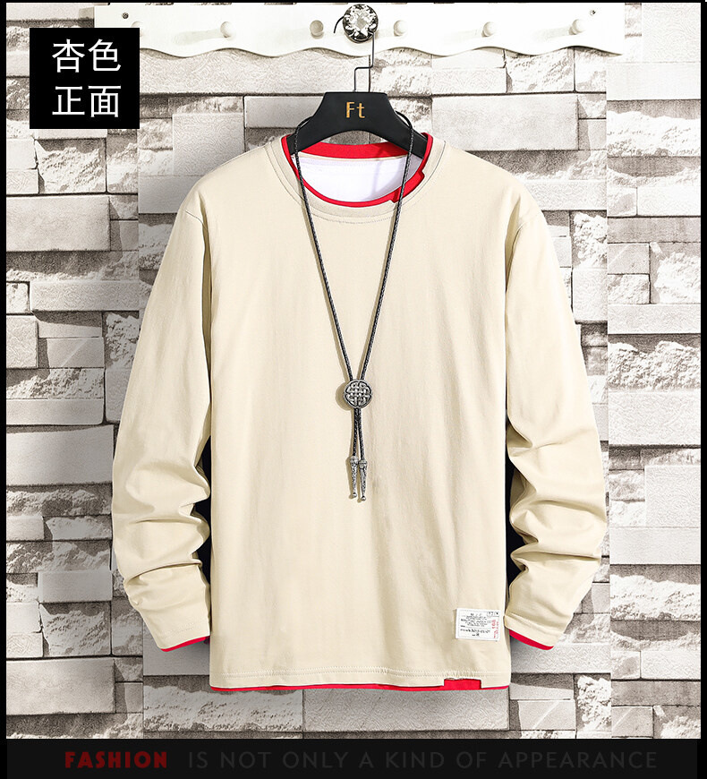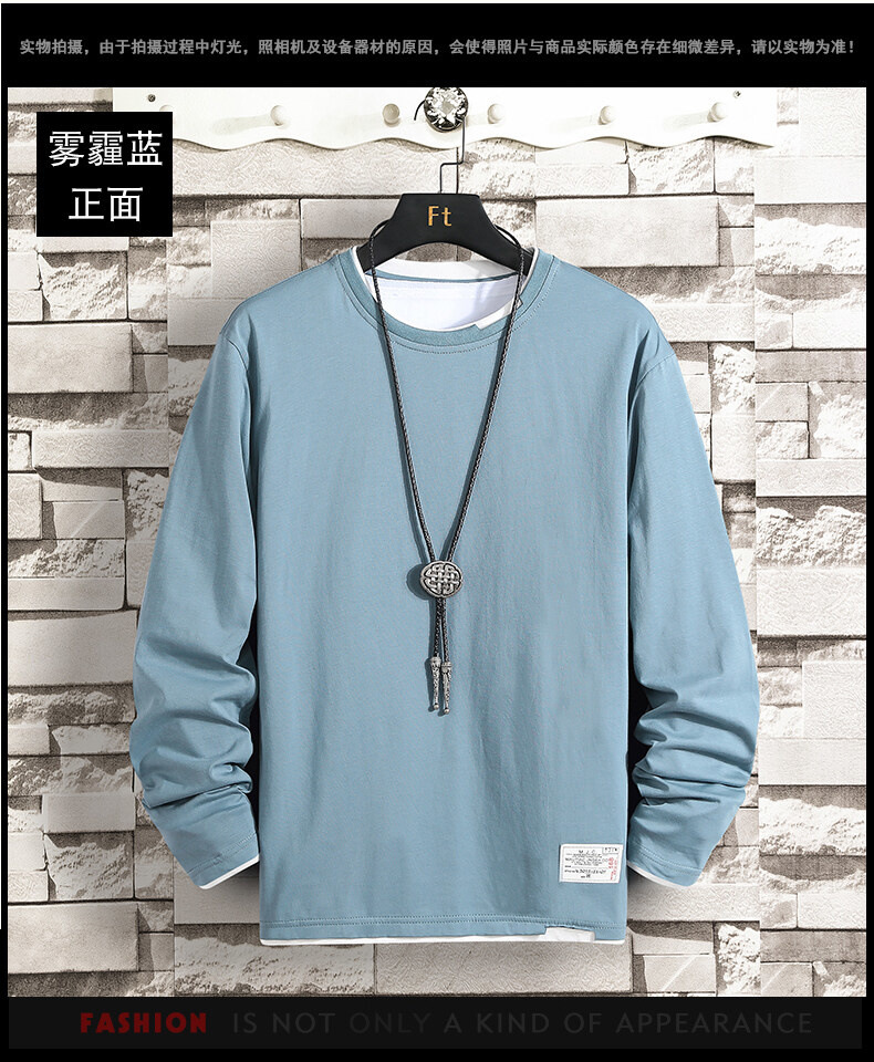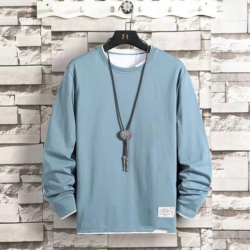남성용 긴팔 티셔츠 2023 봄과 가을 신상 유행 캐주얼 다목적 슬림 라운드 넥 코튼 긴팔 티셔츠 남성스토어 가기