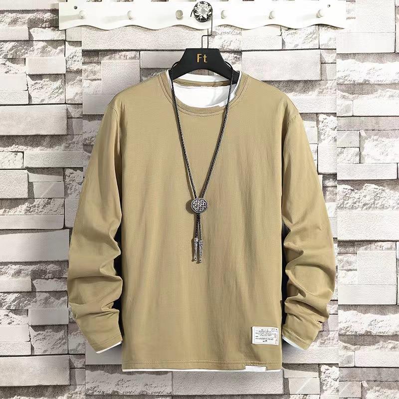 남성용 긴팔 티셔츠 2023 봄과 가을 신상 유행 캐주얼 다목적 슬림 라운드 넥 코튼 긴팔 티셔츠 남성