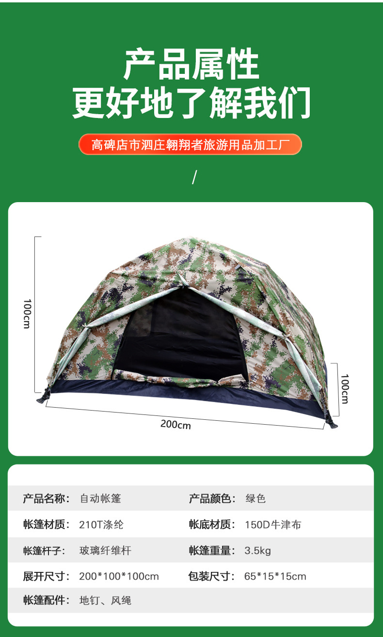 비행 단일 자동 더블 레이어 방비 텐트 야외 캠핑 위장 빠른 오프닝 단일 군인 텐트 공장 도매스토어 가기