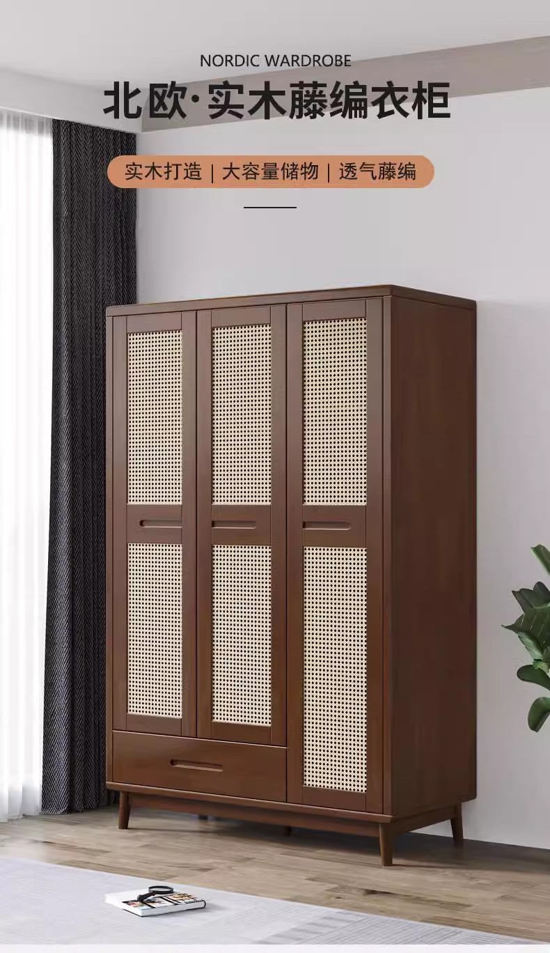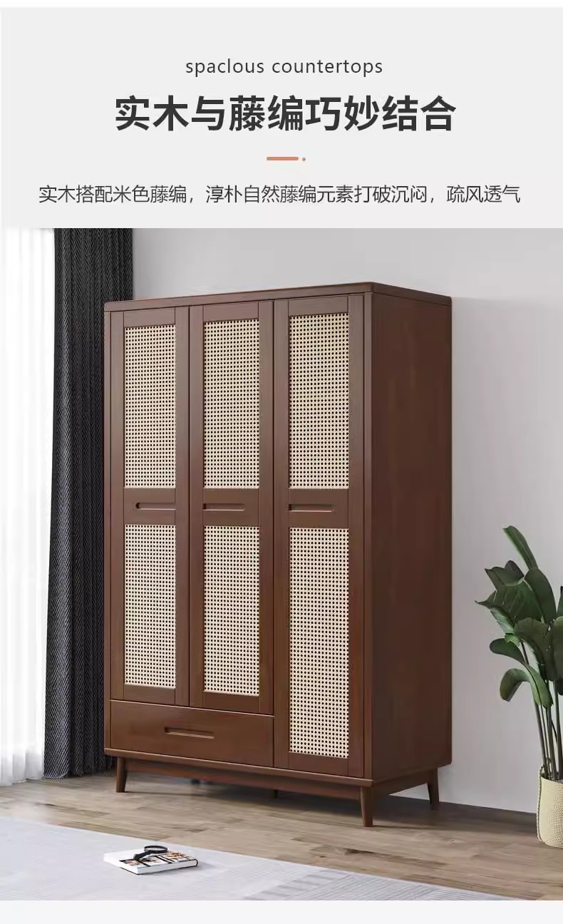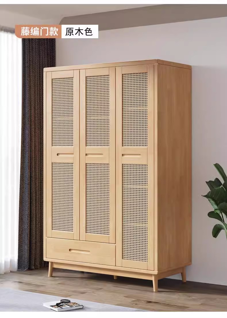 단단한 나무 옷장 등나무 옷장 침대 및 아침 식사 가구 2 문 3 문 저장 옷장 일본 작은 아파트 침실 사물함
