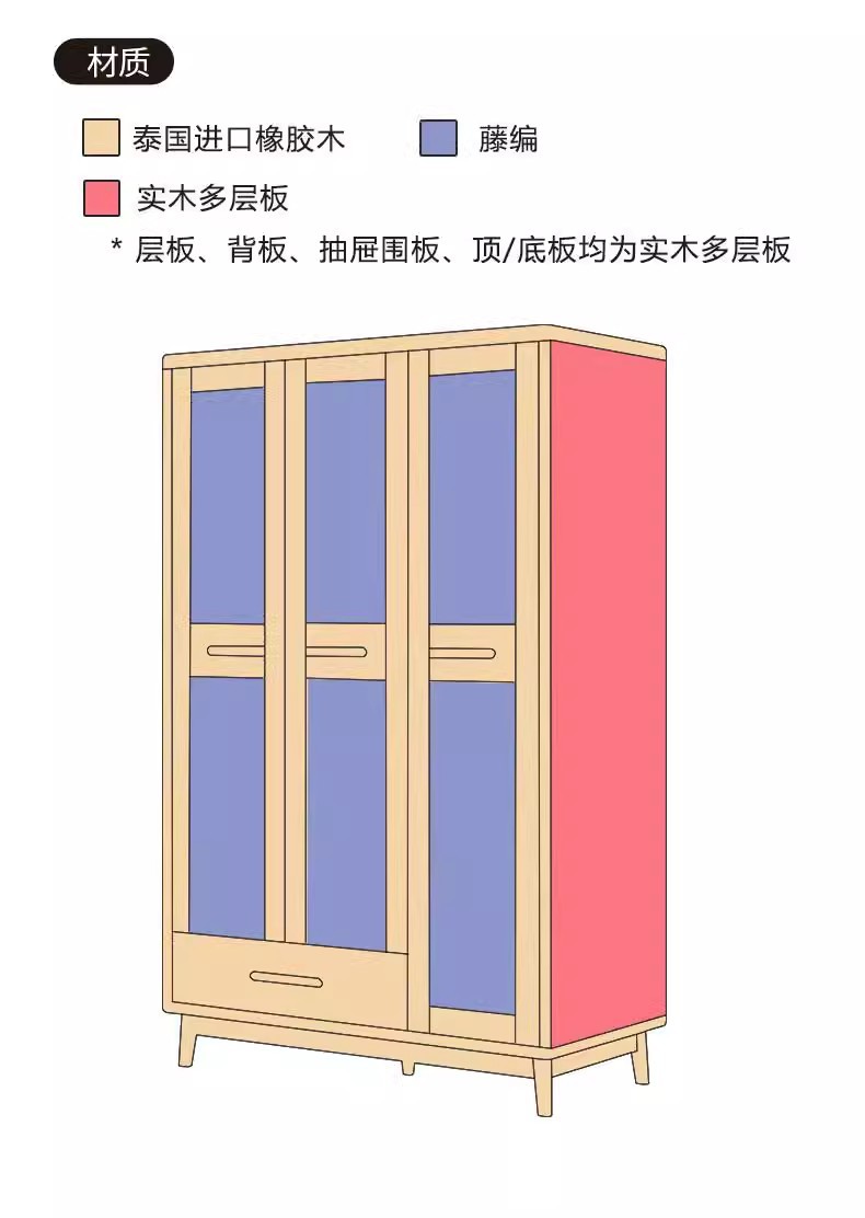단단한 나무 옷장 등나무 옷장 침대 및 아침 식사 가구 2 문 3 문 저장 옷장 일본 작은 아파트 침실 사물함스토어 가기