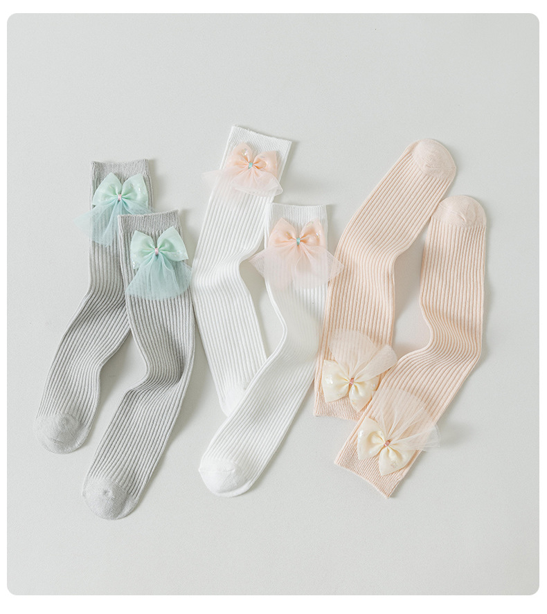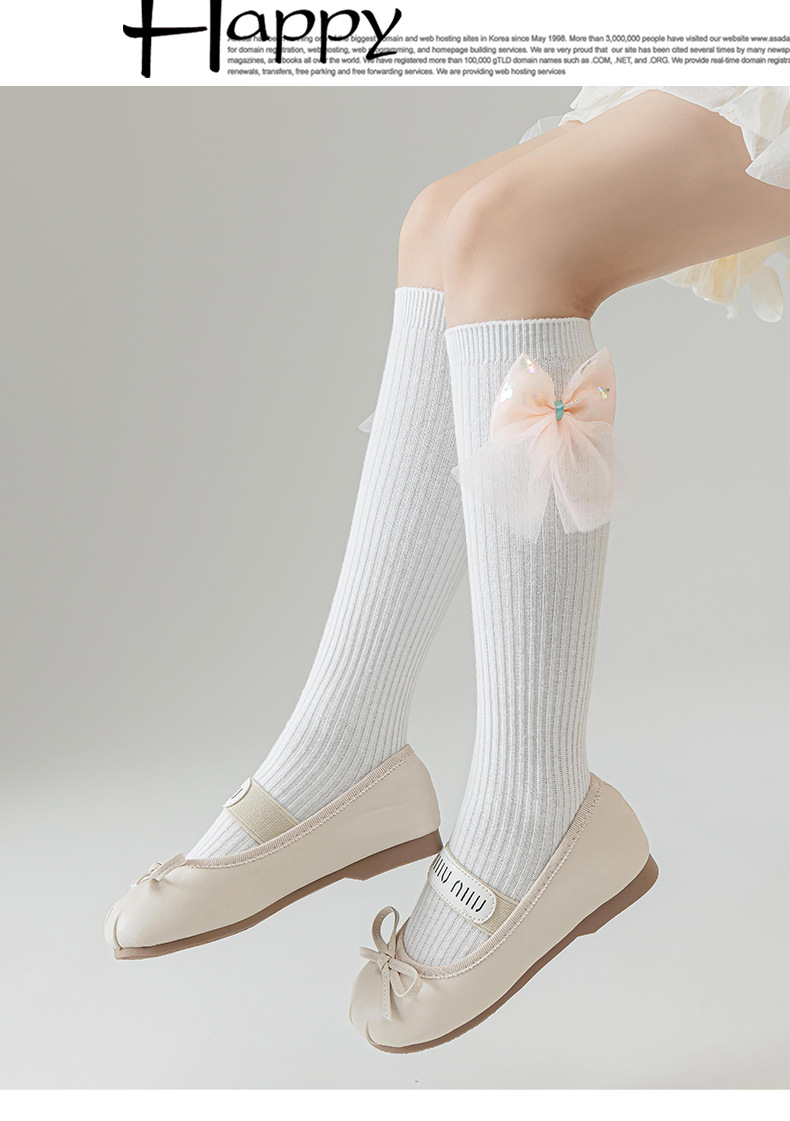 2024 봄 새 스팽글 원사 나비 어린이 중간 종아리 양말 스트레이트 소녀 줄무늬 종아리 양말스토어 가기