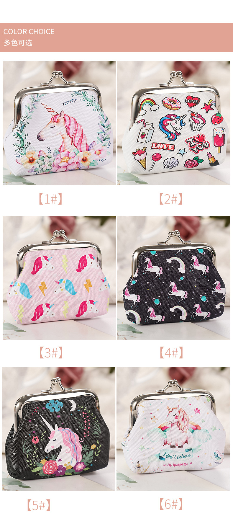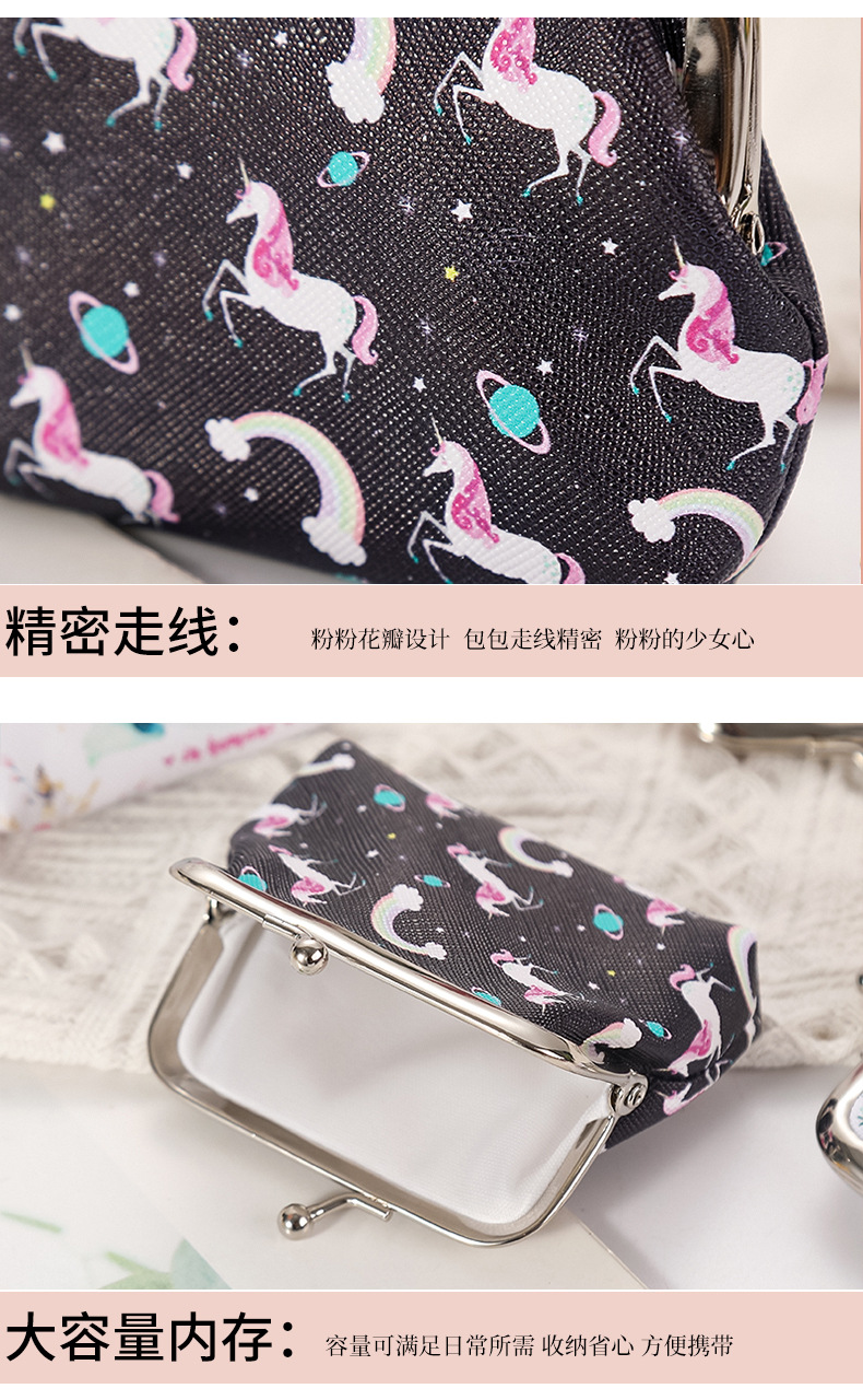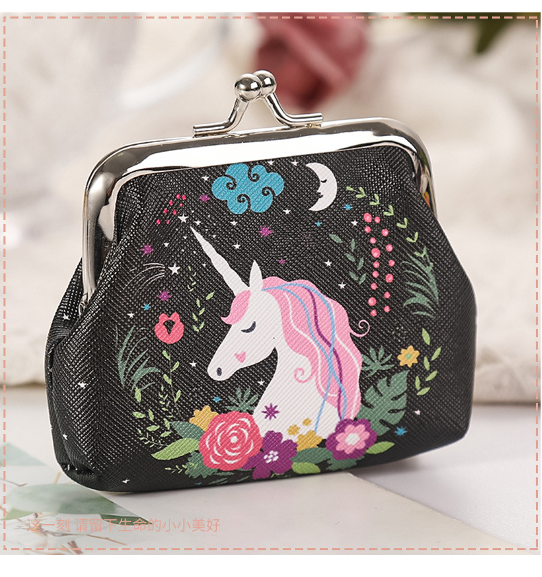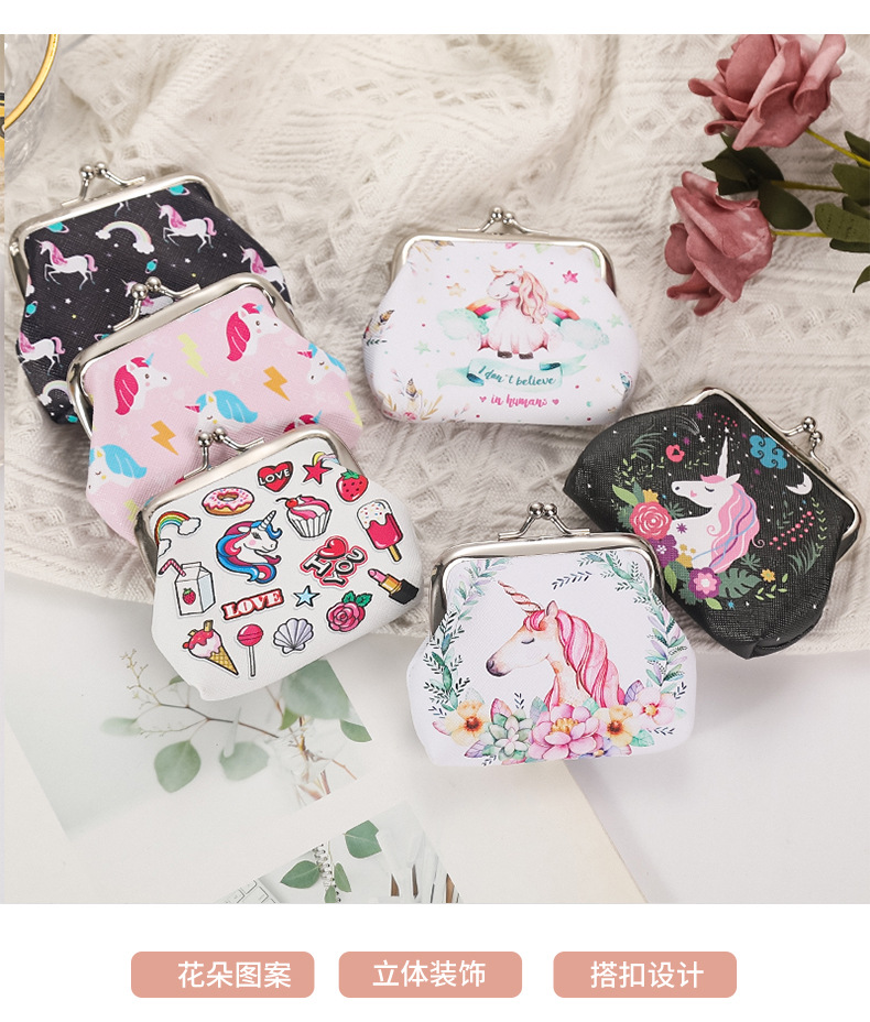 재고 귀여운 유니콘 여성의 작은 열쇠 가방 선물 가방 보석 가방 버클 동전 지갑스토어 가기