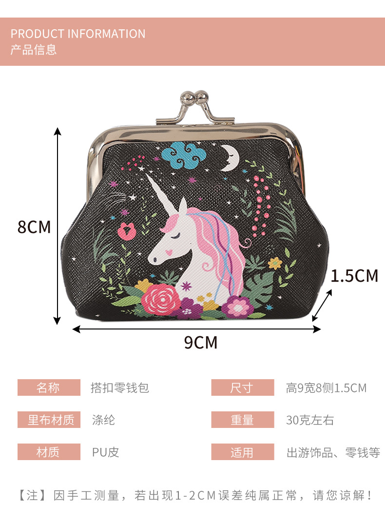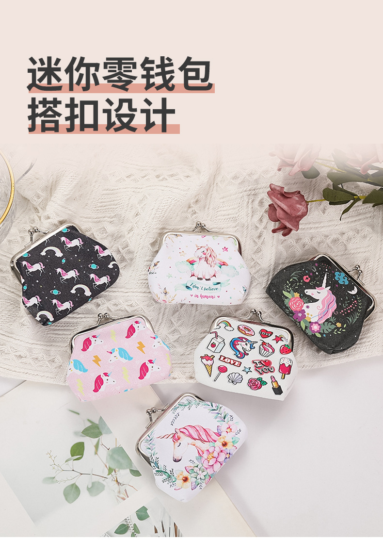 재고 귀여운 유니콘 여성의 작은 열쇠 가방 선물 가방 보석 가방 버클 동전 지갑