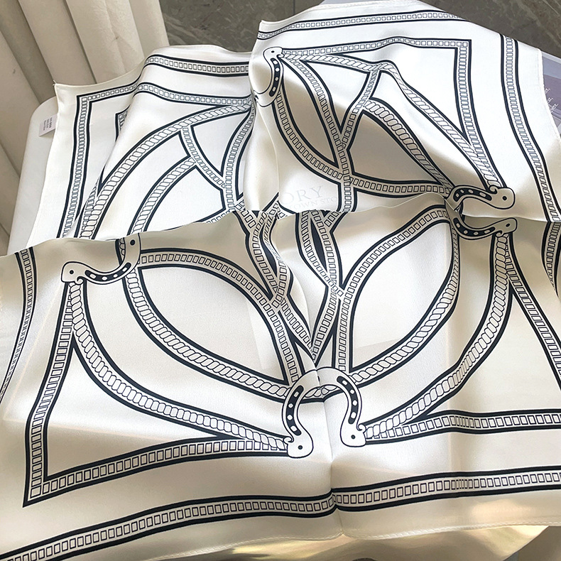 심플한 흑백 패션 멀버리 실크 스카프, 패셔너블하고 클래식하고 우아한 실크 스카프 53cm 정사각형 스타일 작은 사각형 스카프스토어 가기