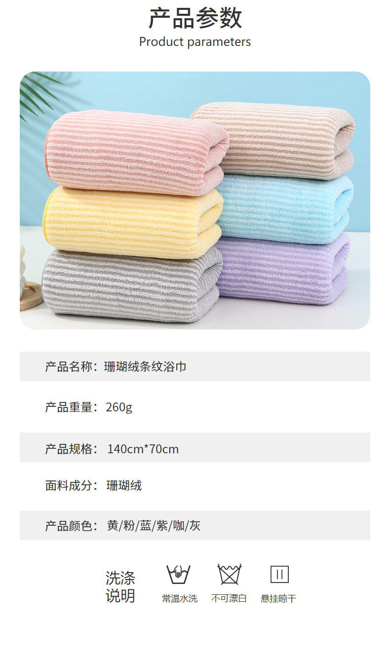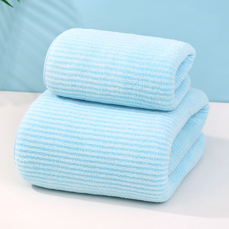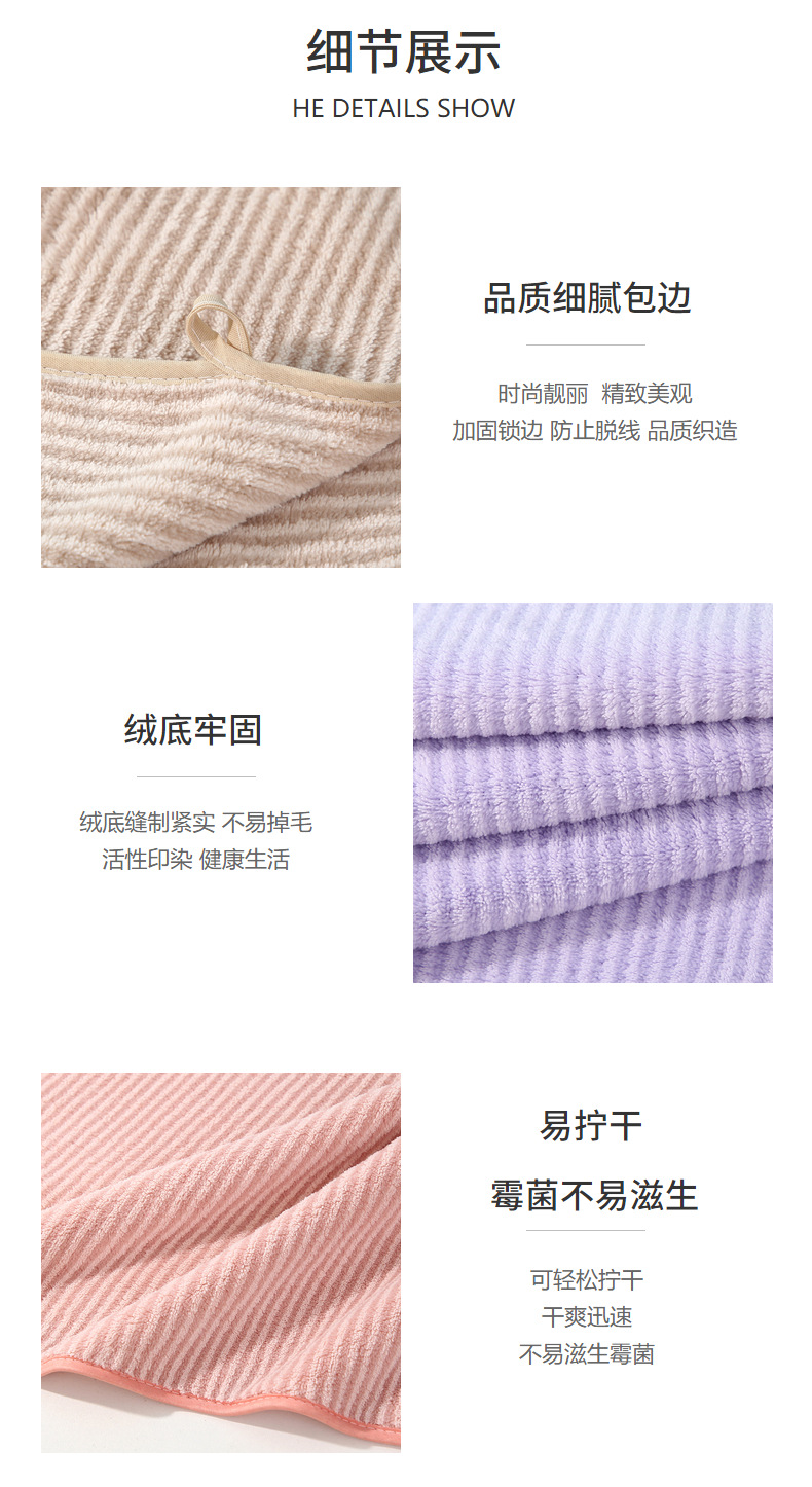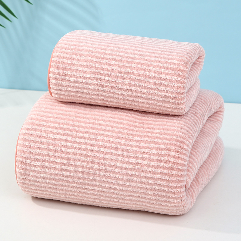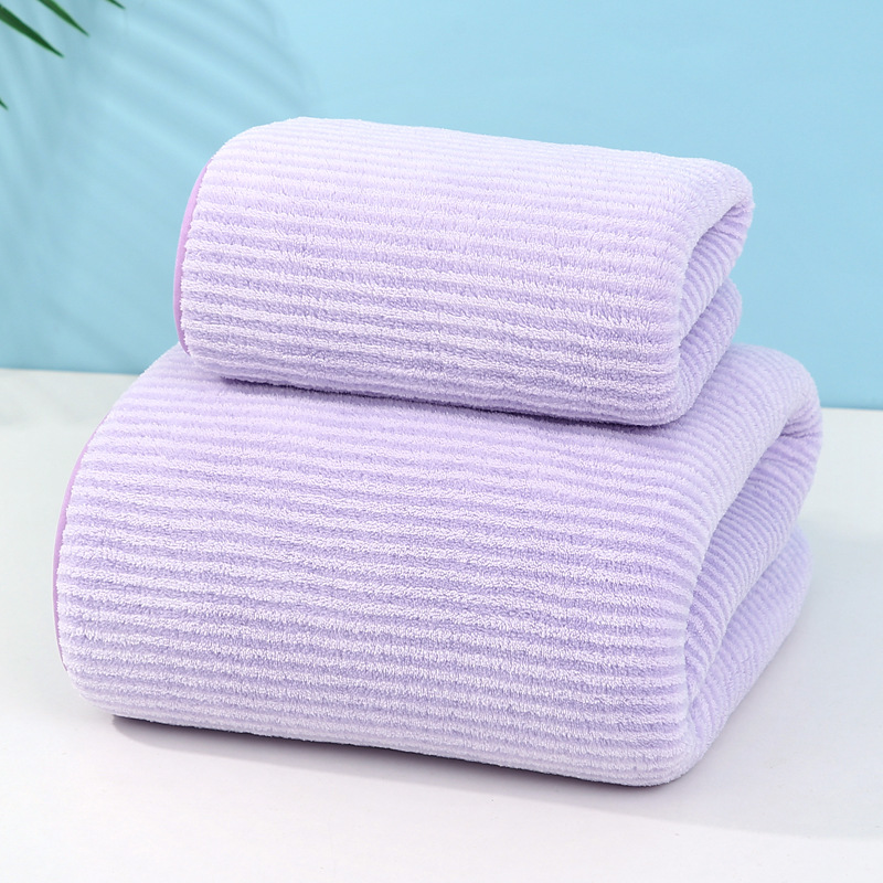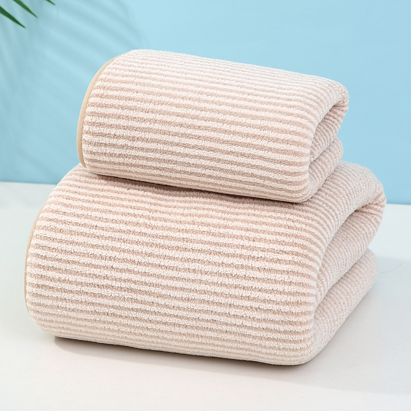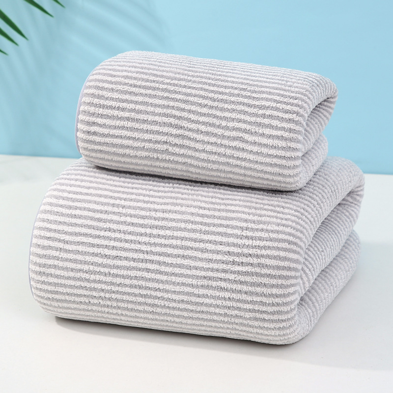 도매 국경 산호 양털 목욕 타월 줄무늬 두꺼운 물 흡수 빠른 건조 증가 얇은 스트립 클래스 커플 부드러운 세척