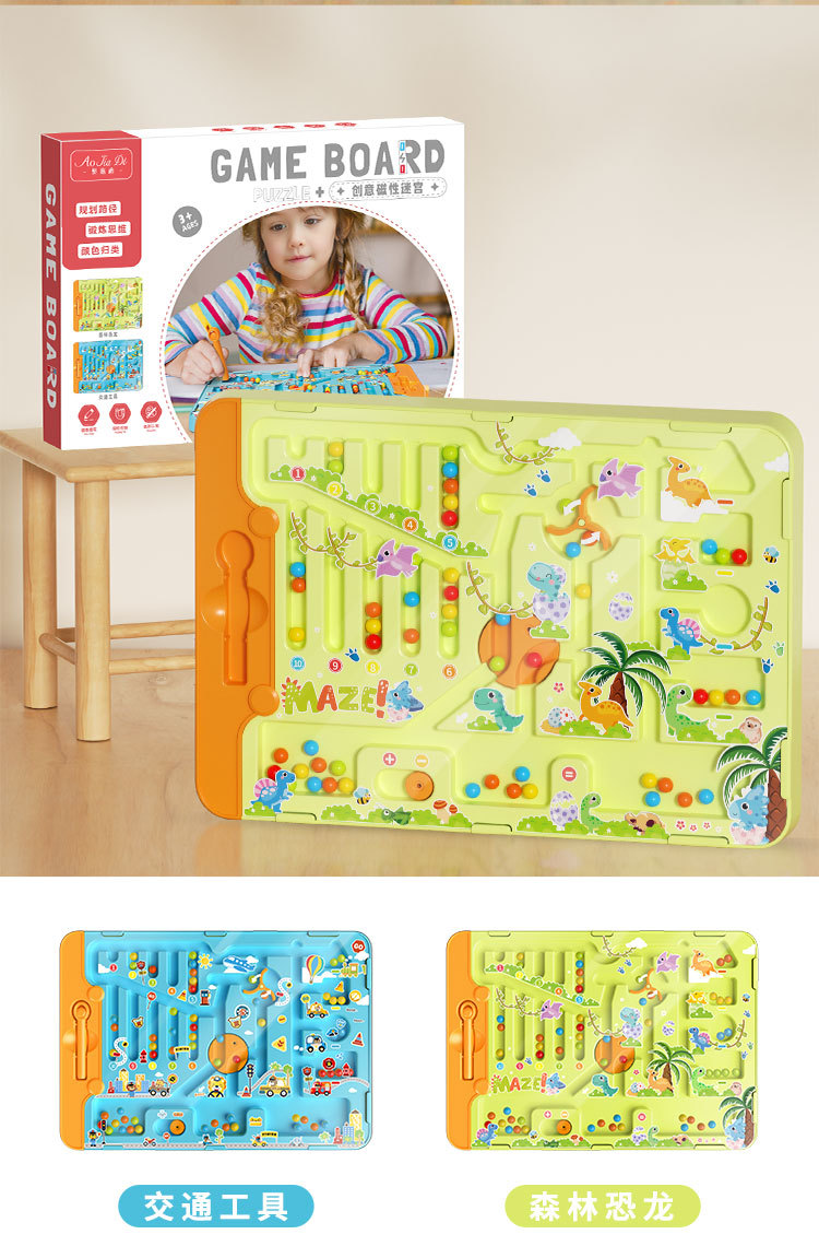 • 숲 공룡 미로-자기 비행 체스 양면 플레이트 (55 구슬)