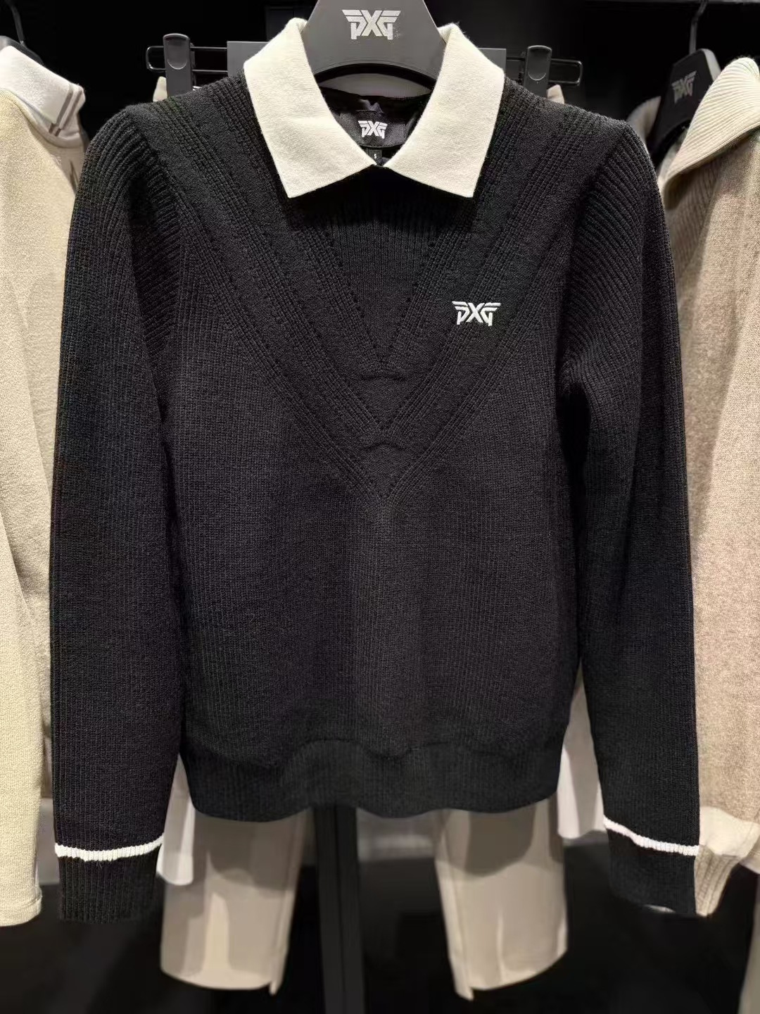 가을 겨울 신상 한국 골프 긴팔 배색 니트 스웨터, 두꺼운 니트 공법, 앞면 가슴 자수, 내부 방풍 기능스토어 가기