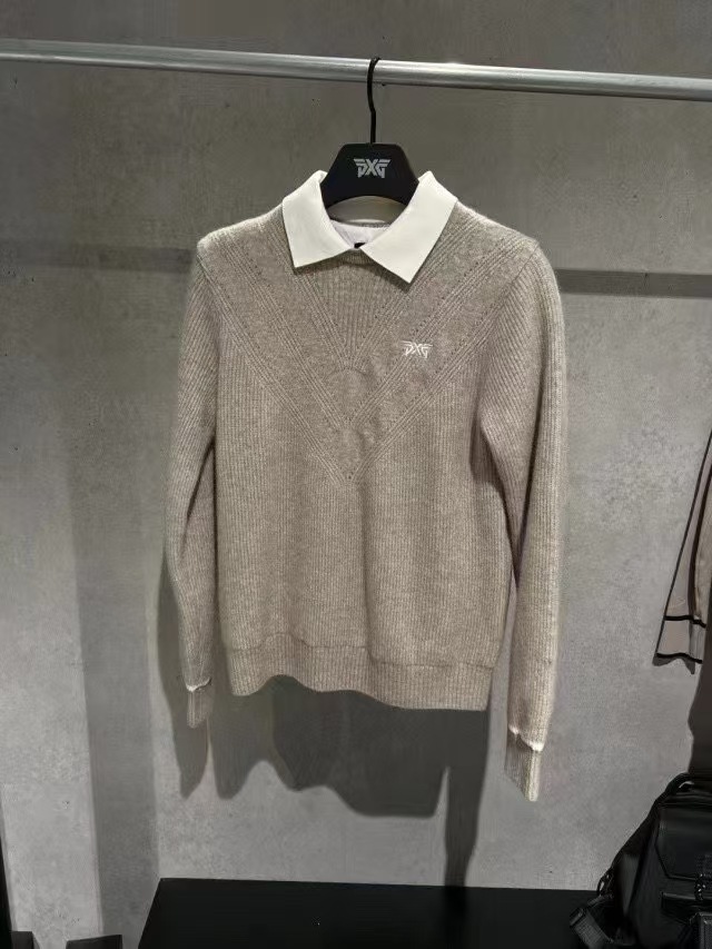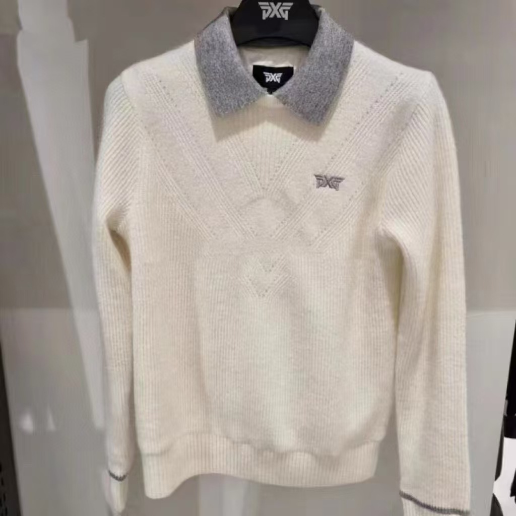 가을 겨울 신상 한국 골프 긴팔 배색 니트 스웨터, 두꺼운 니트 공법, 앞면 가슴 자수, 내부 방풍 기능