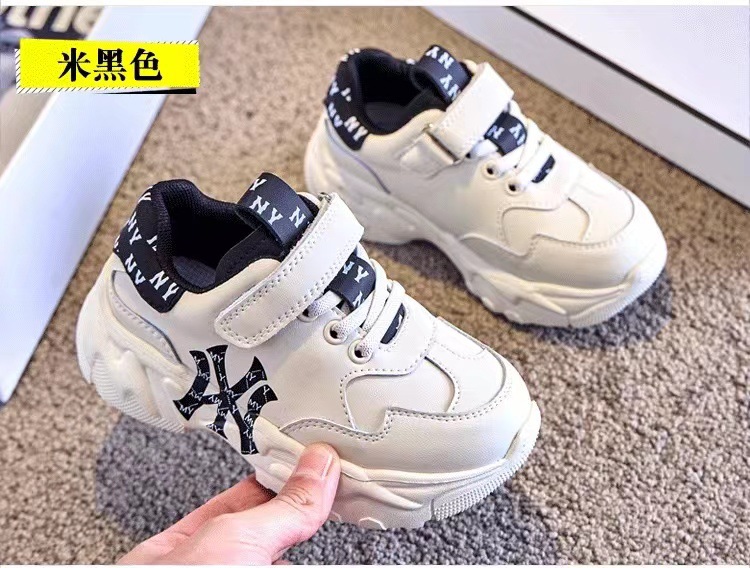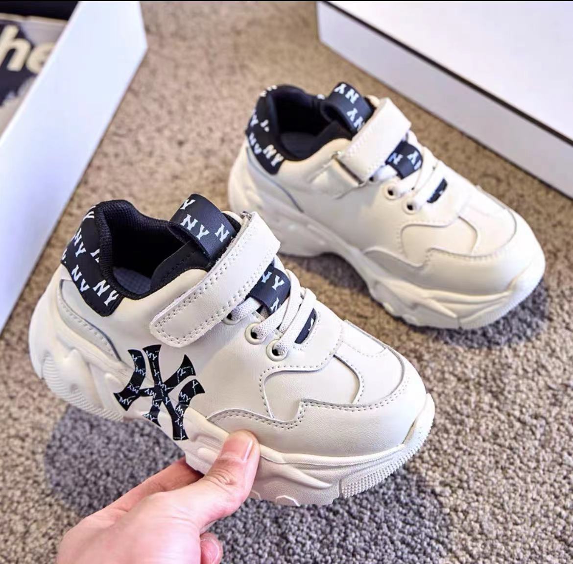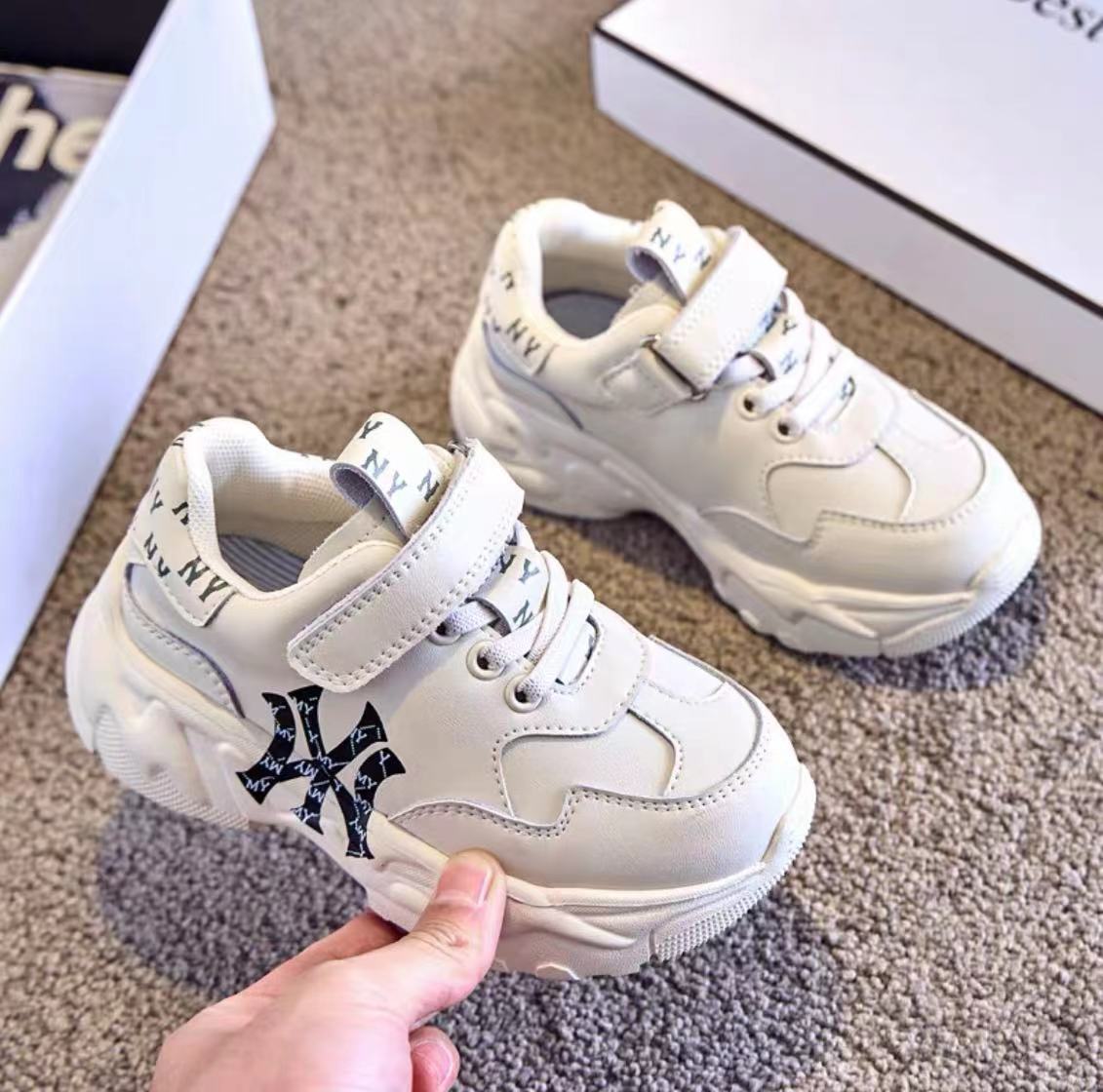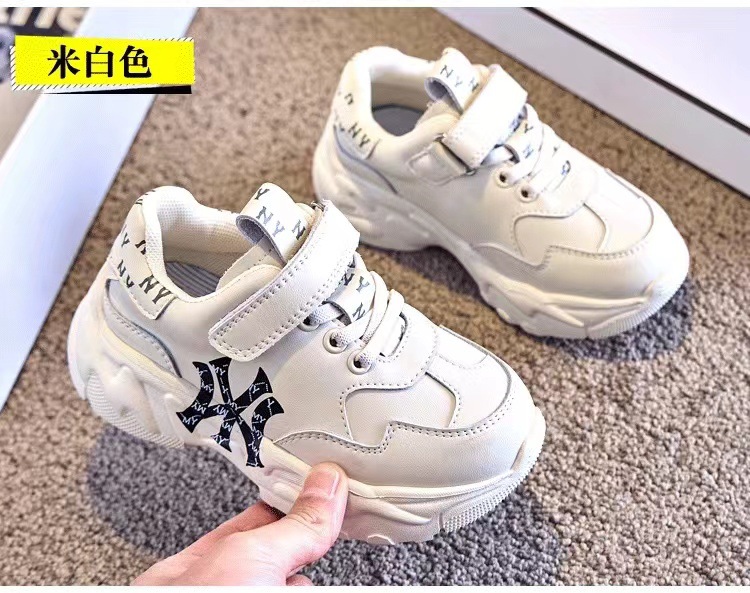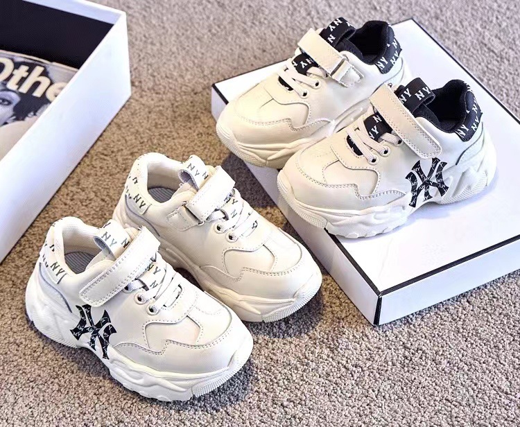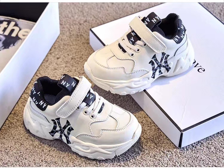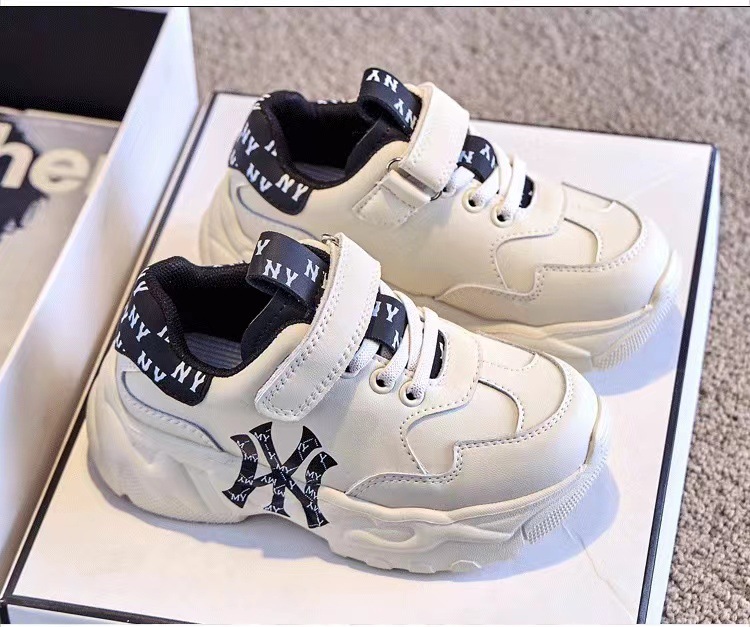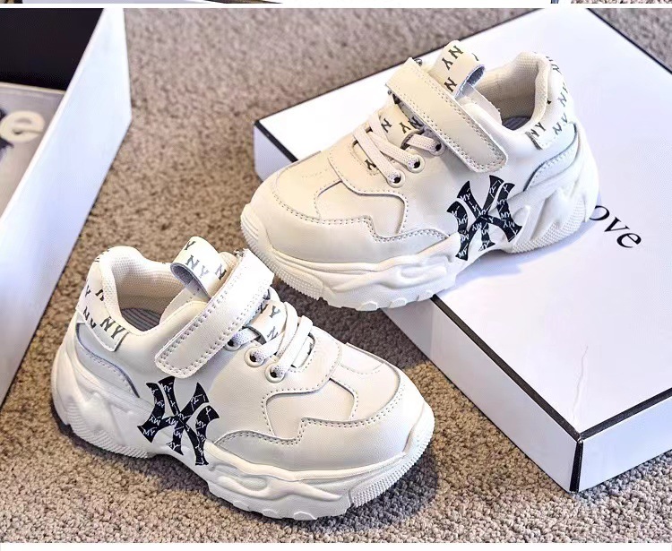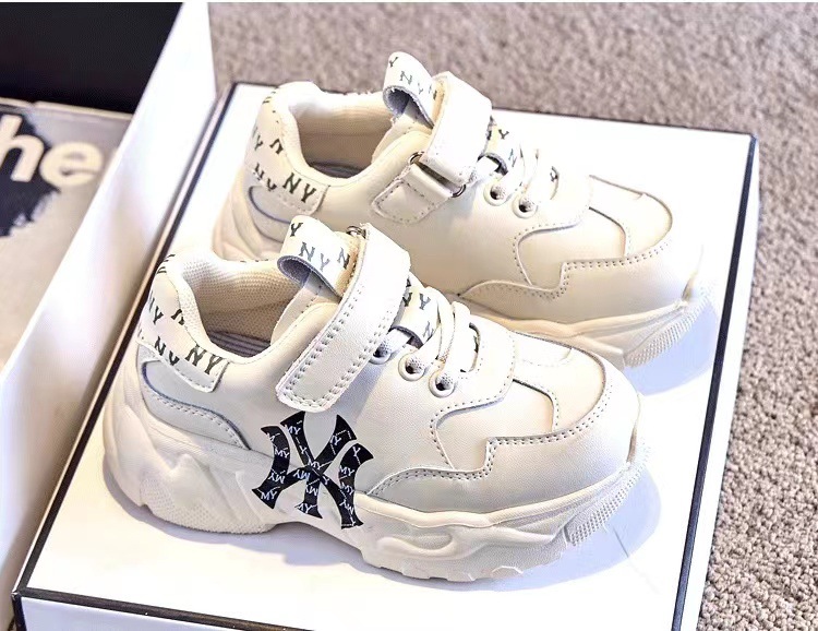 정품 가죽 어린이 운동화 2025 봄 새로운 한국어 버전 mlb 소녀 흰색 신발 소년 아빠 신발 유행 브랜드스토어 가기
