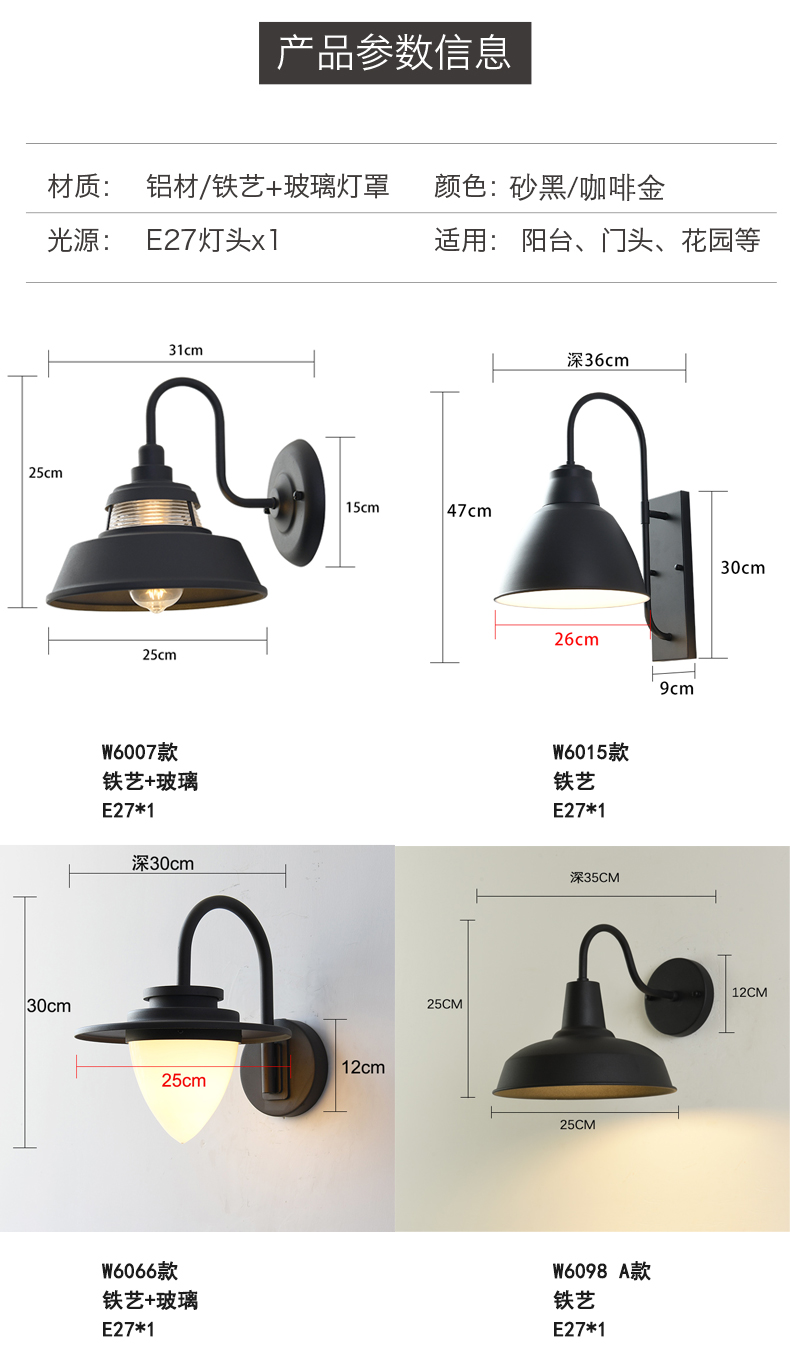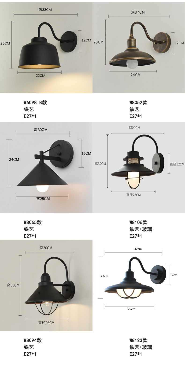 아메리칸 스타일 야외 문 방수 벽 램프 레트로 발코니 방 외부 벽 멀리 빌라 선샤인 룸 조명 설비