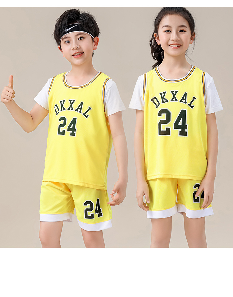 도매 여름 어린이 스포츠 세트 중형 및 대형 소년 소녀 통기성 조끼 반바지 투피스 세트 재고스토어 가기