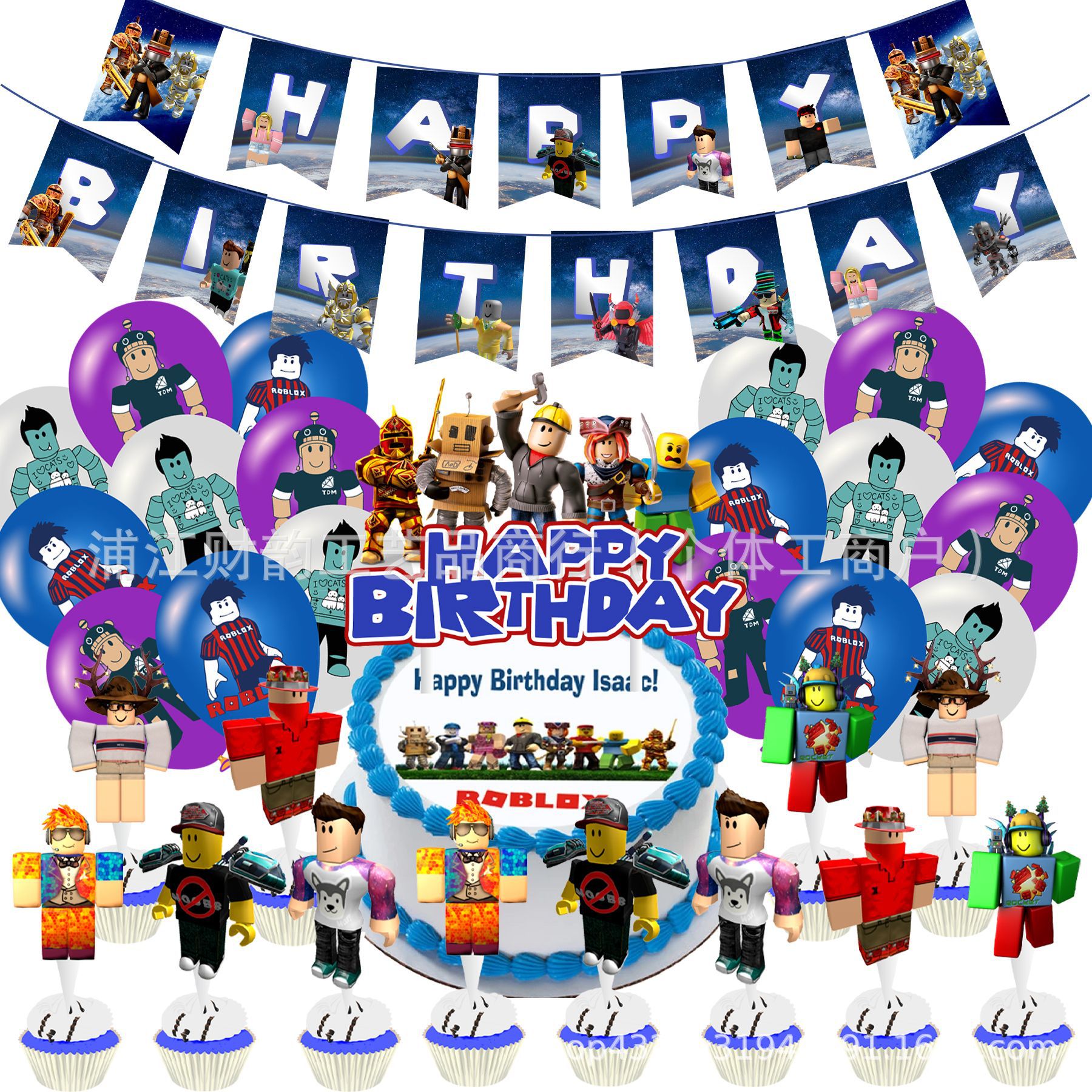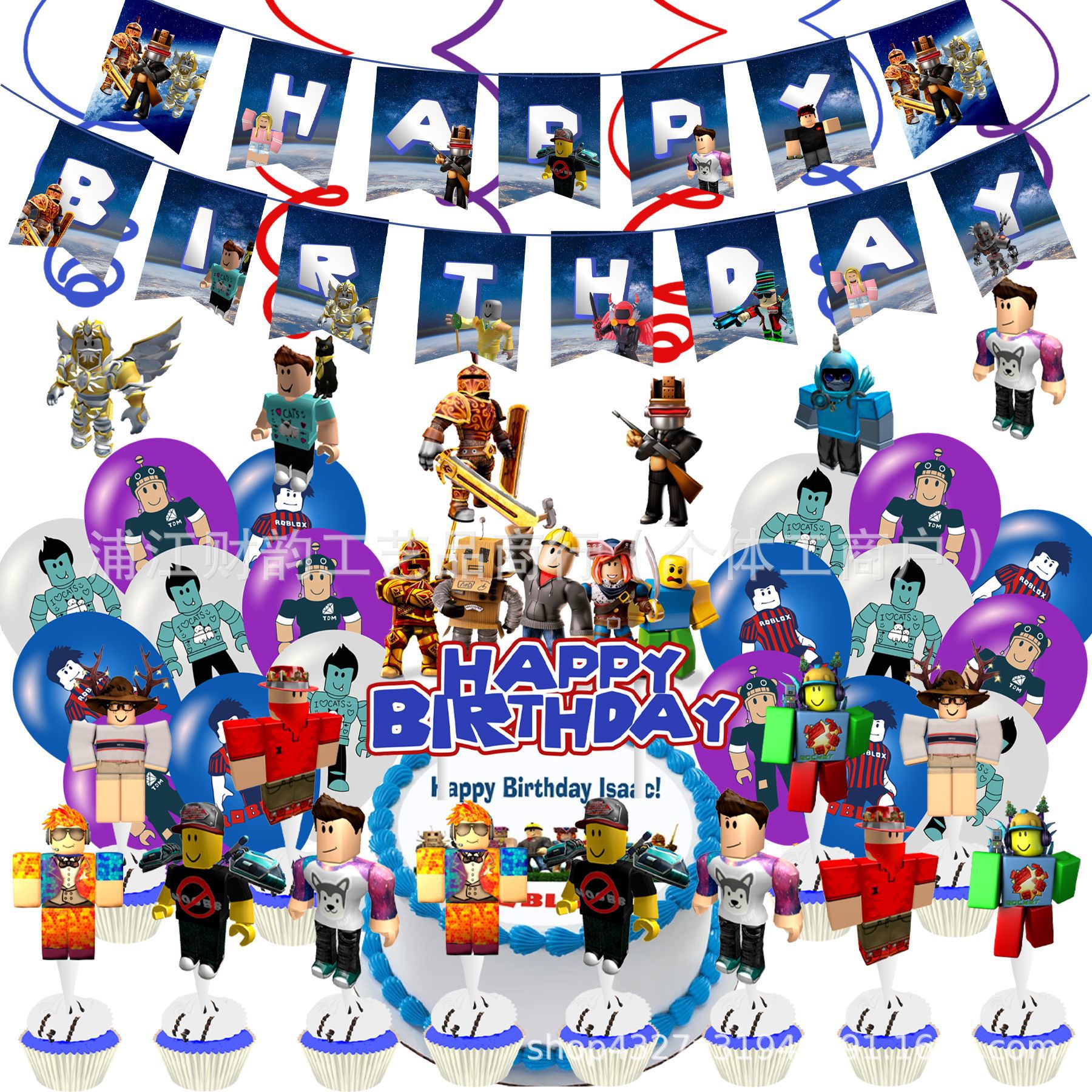 Roblox Robert 가상 세계 테마 파티 장식 생일 깃발 케이크 나선형 풍선 세트 삽입스토어 가기