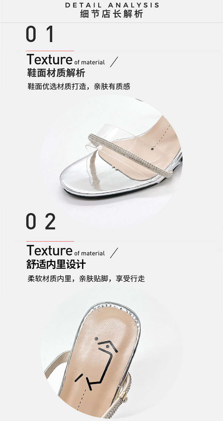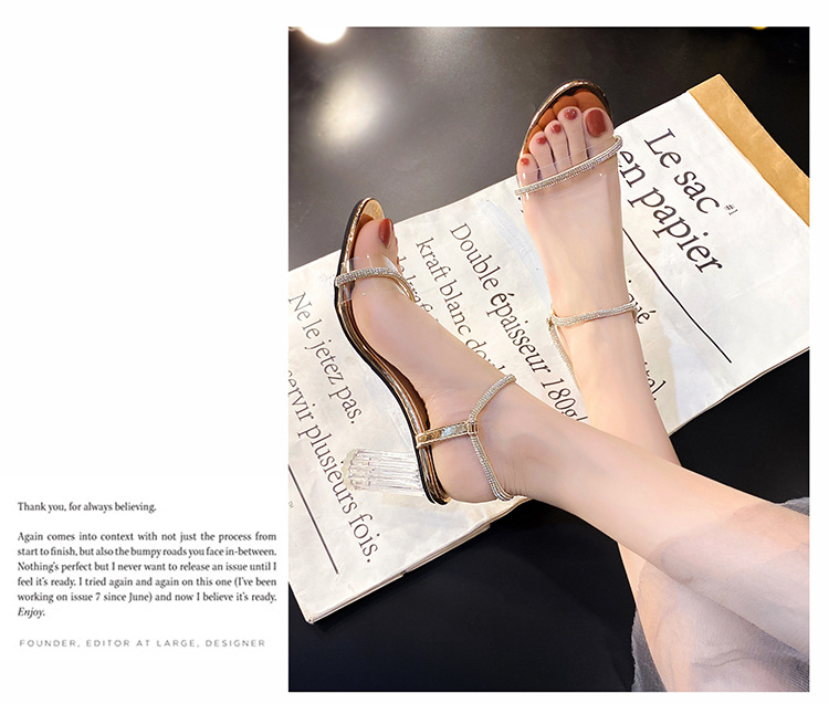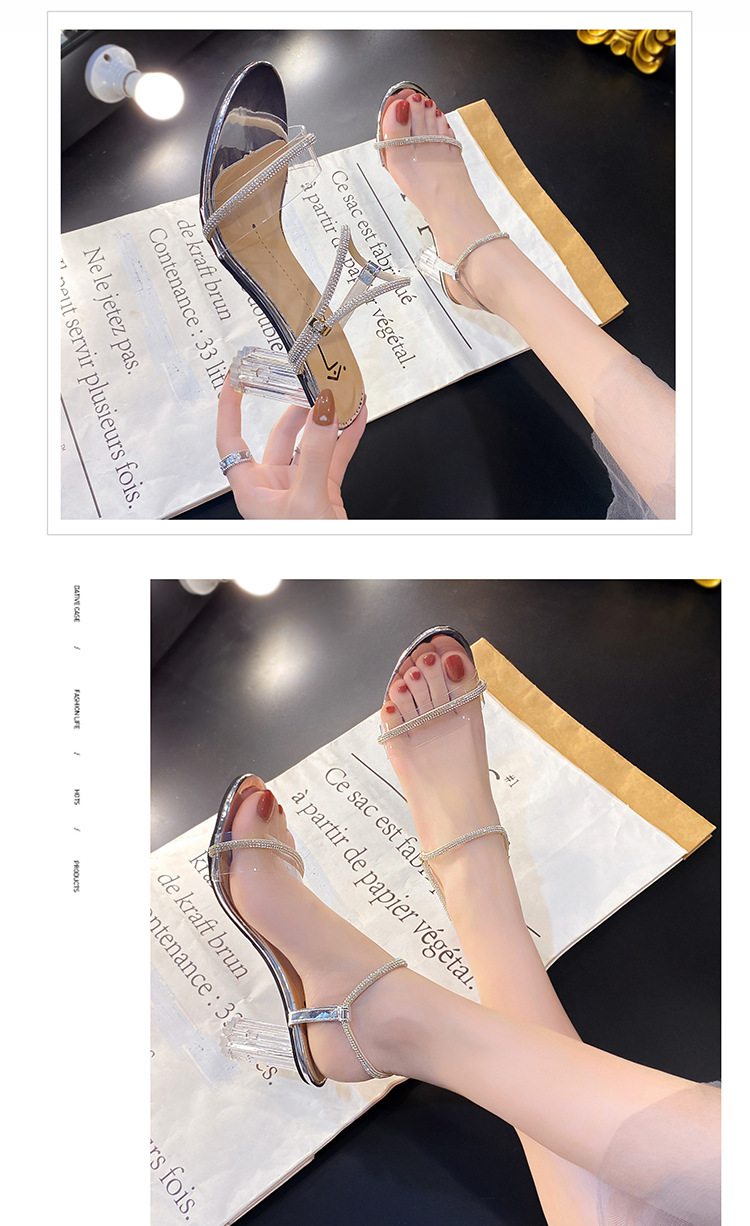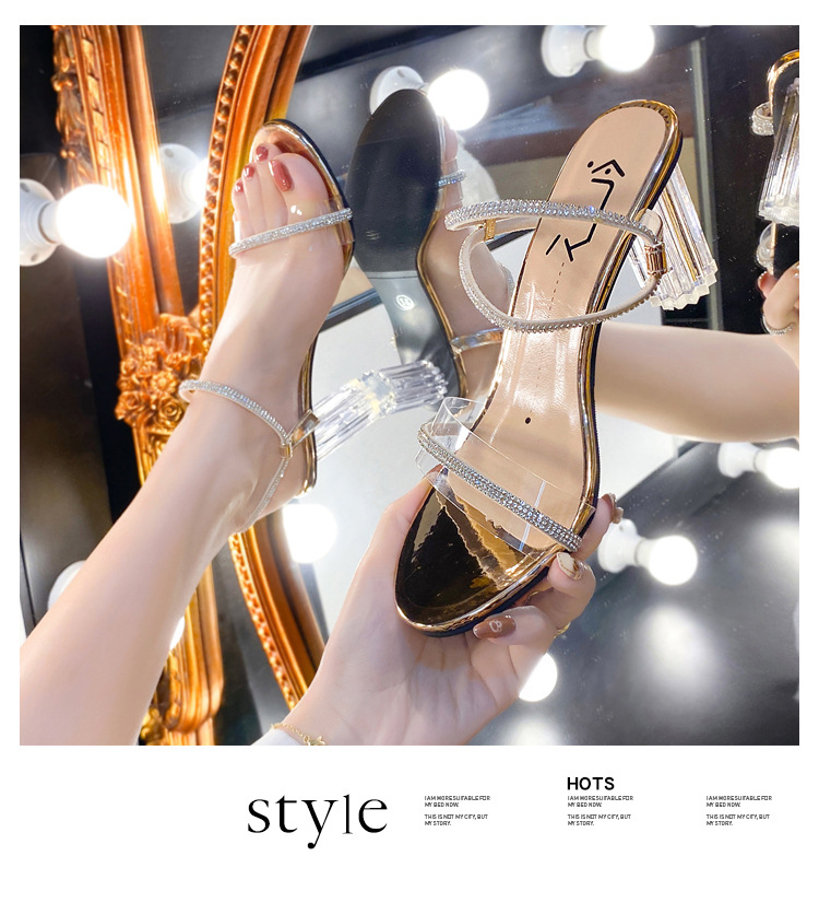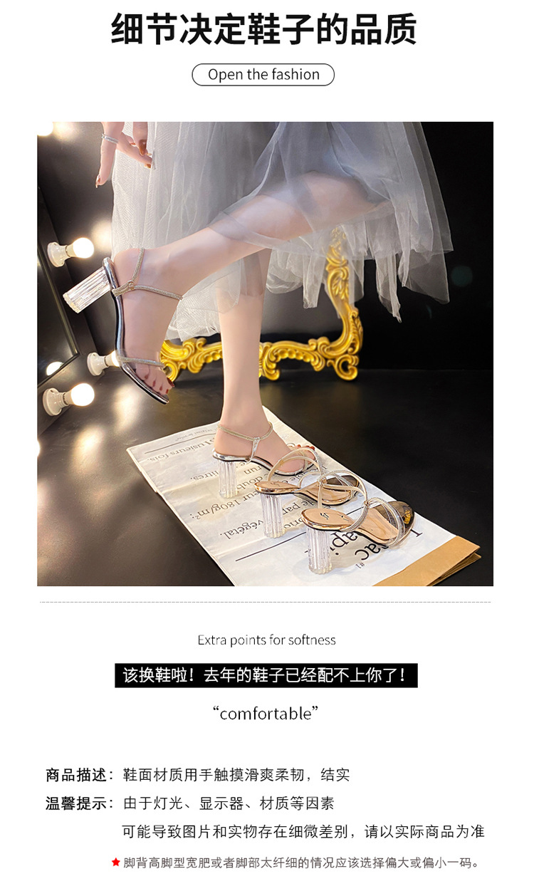 크리스탈 하이힐 여성의 2024 새로운 사이버 기념 투명 프랑스 스타일 신발 샌들 요정 스타일 하이힐과 두꺼운 힐을 여름스토어 가기
