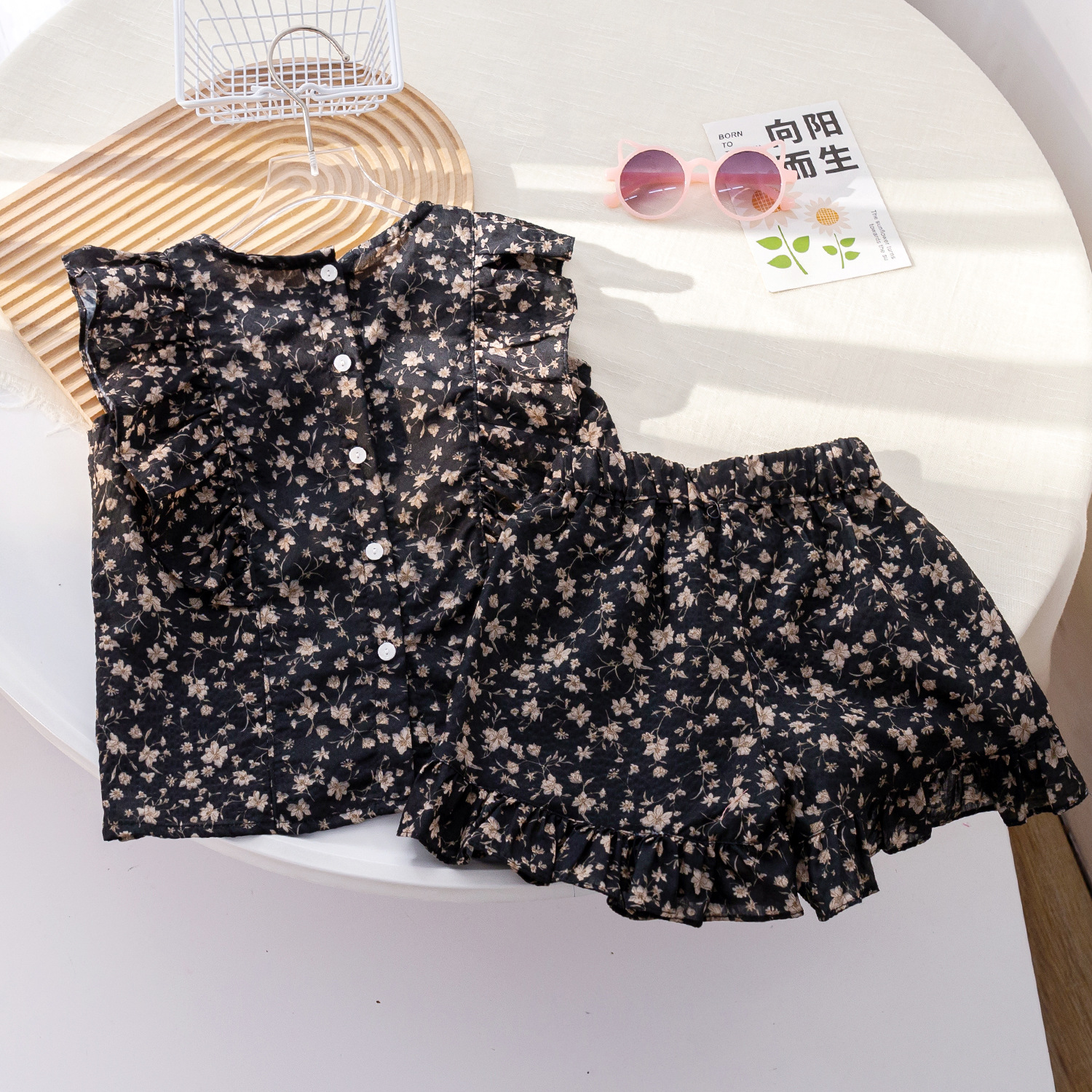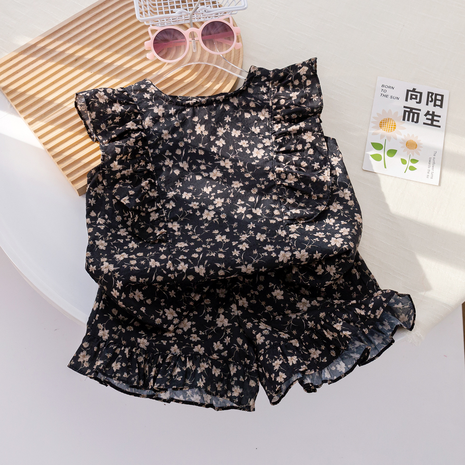 여자 꽃무늬 양복 2025 여름 새 스타일 어린 소녀 플라잉 슬리브 인형 셔츠 베이비 반바지 유행 투피스 세트스토어 가기