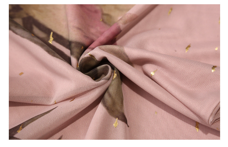 유럽 여성 의류 2024 봄과 여름 패션 서양식 긴 소매 라운드 넥 메쉬 티셔츠 여성용 브론징 포지셔닝 플라워 티셔츠 탑