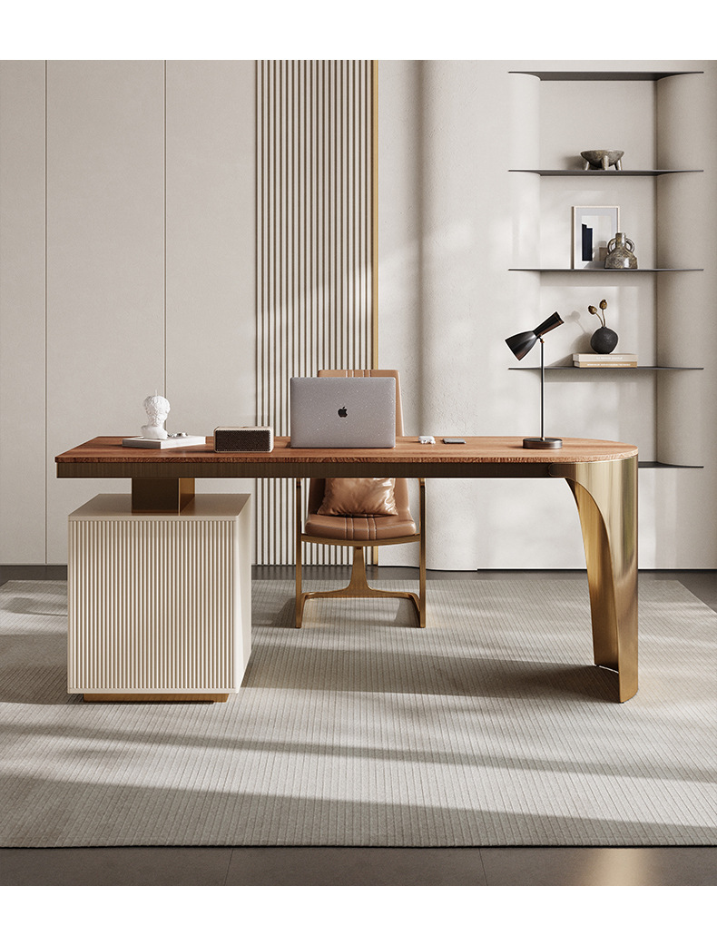 가벼운 고급 단단한 나무 책상 현대 미니멀 한 가정 연구 컴퓨터 책상 디자이너 하이 엔드 스테인레스 스틸 책상 통합