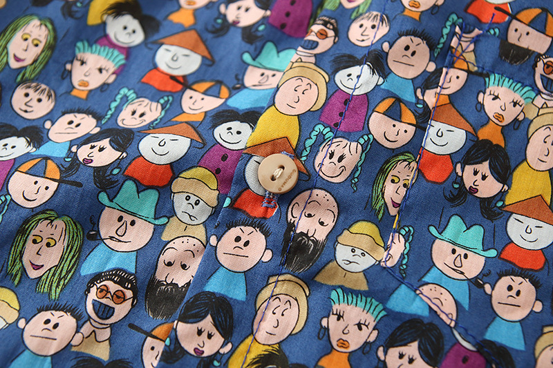 • 블루 만화 악당 셔츠-짧은 소매-투피스 QQH