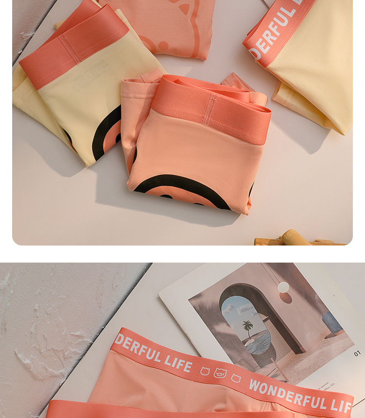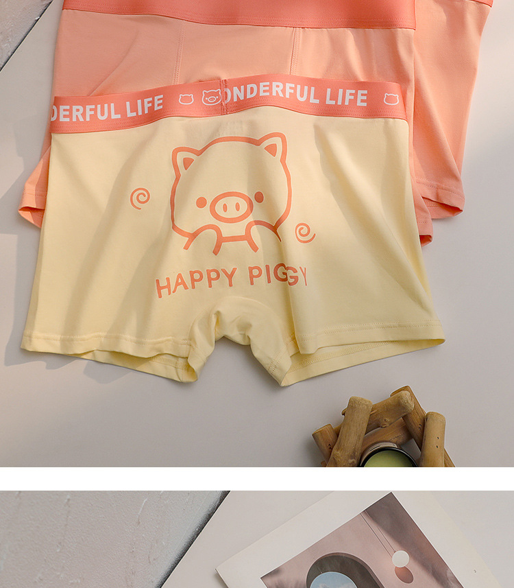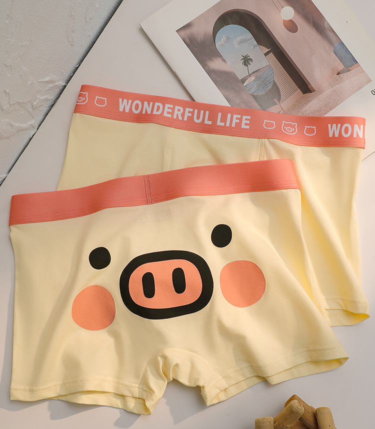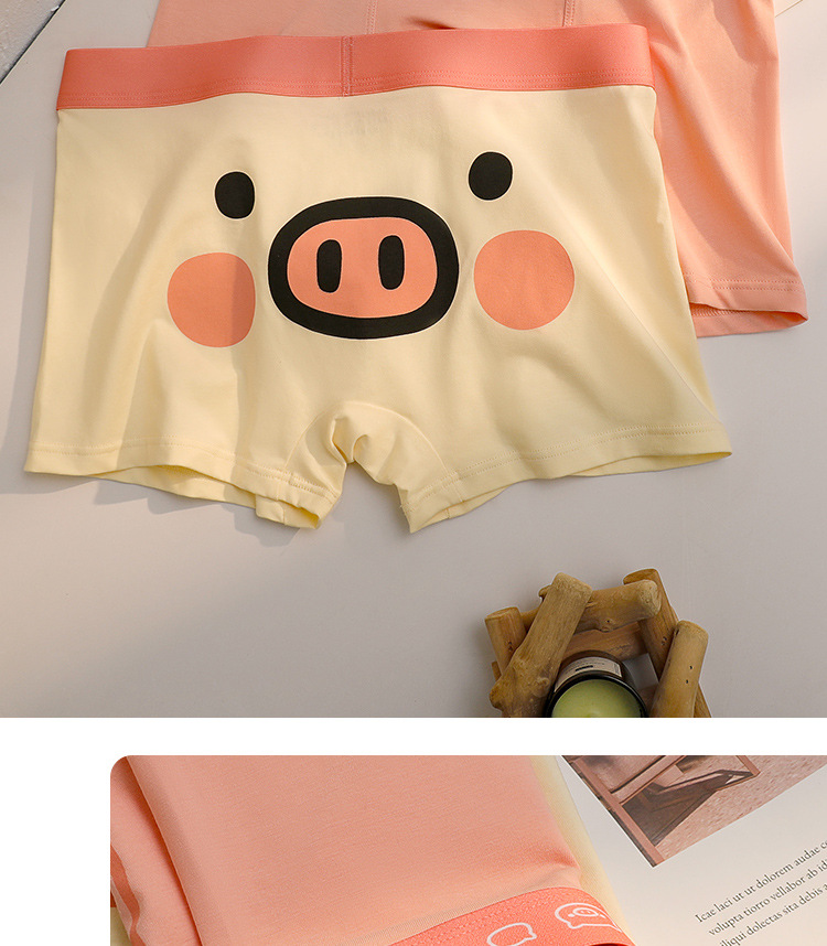 돼지 소년 핑크 만화 귀여운 남성 속옷 인쇄 순면 통기성 편안한 권투 선수 소년 권투 선수스토어 가기