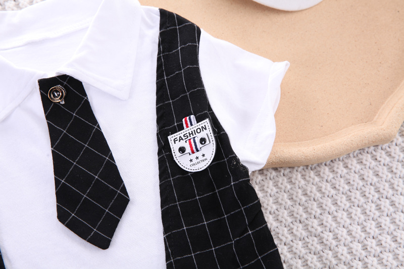 2024 새로운 여름 아기 소년 반팔 가짜 투피스 세트 타이 조끼 세트 투피스 세트 대외 무역 도매