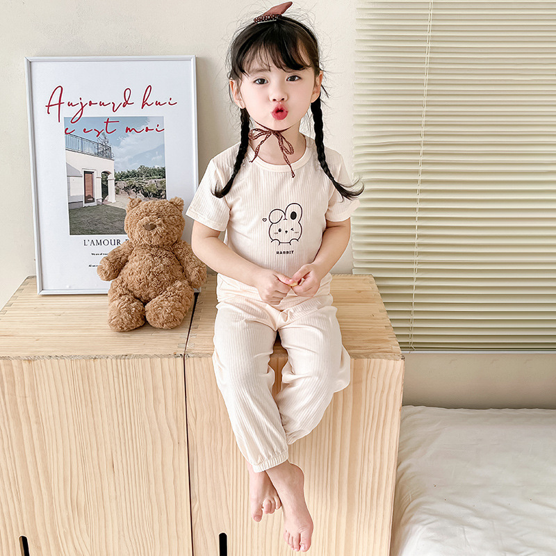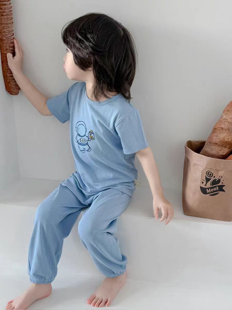 Mocotton 어린이 반팔 바지 일반 에어컨 옷 소년 소녀 홈 착용 세트 여름 얇은
