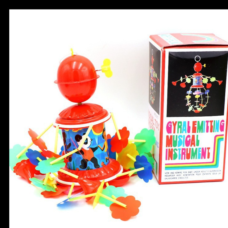 上紧发条就转动,彩色的飘带转动着,并发出叮叮叮的清脆响声。