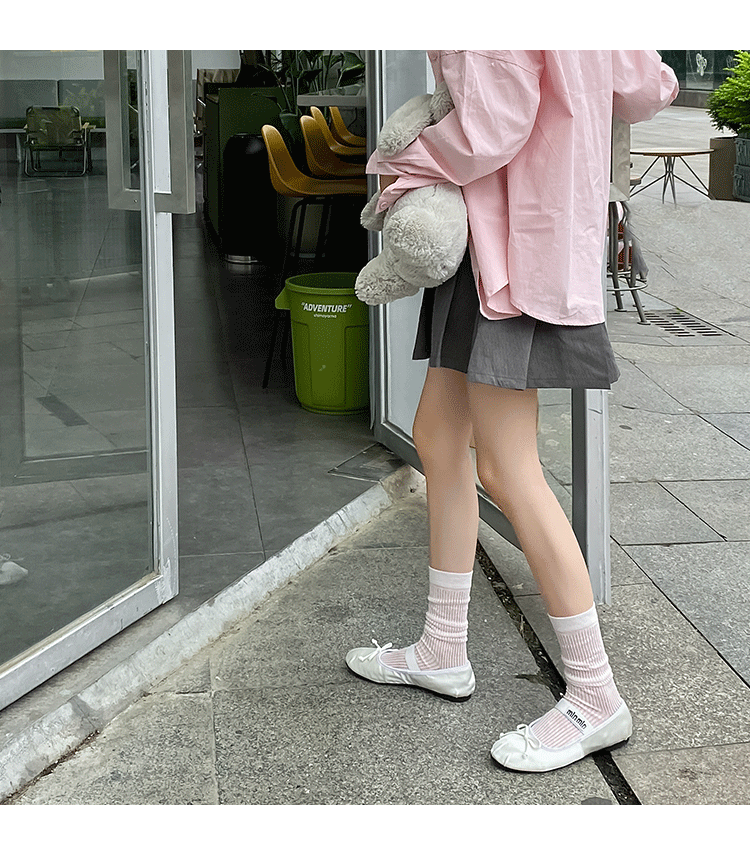 발레 스타일 회색 뼈없는 양말 여성의 중간 송아지 양말 초박형 봄과 여름 빗질면 줄무늬 더미 양말 작은 가죽 신발스토어 가기