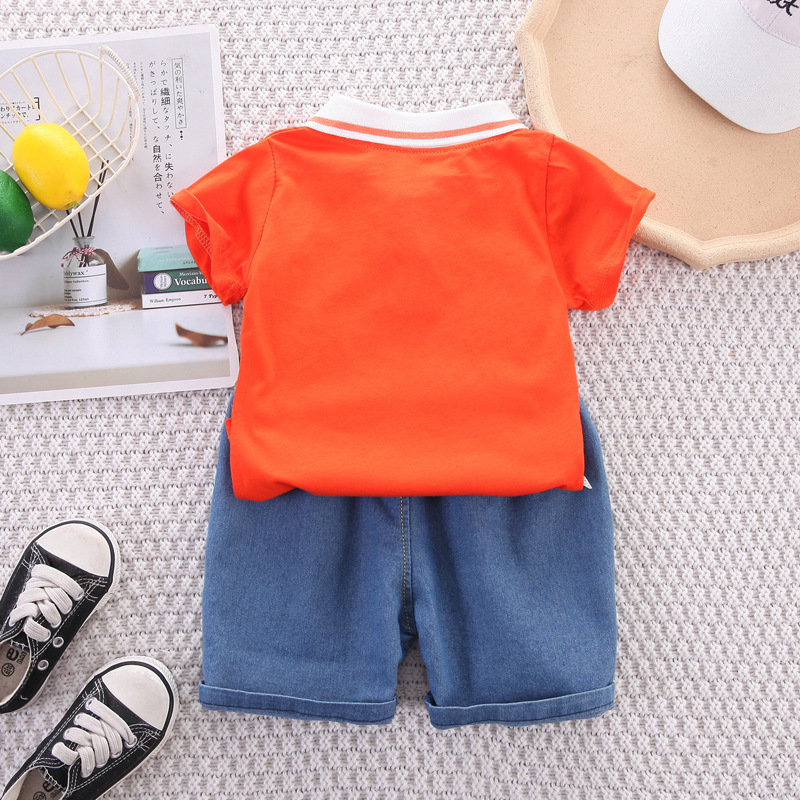 아기 소년의 여름 옷 세트 2024 새로운 아동복 유행 올 매치 짧은 소매 여름 아이들의 잘 생긴 투피스 세트