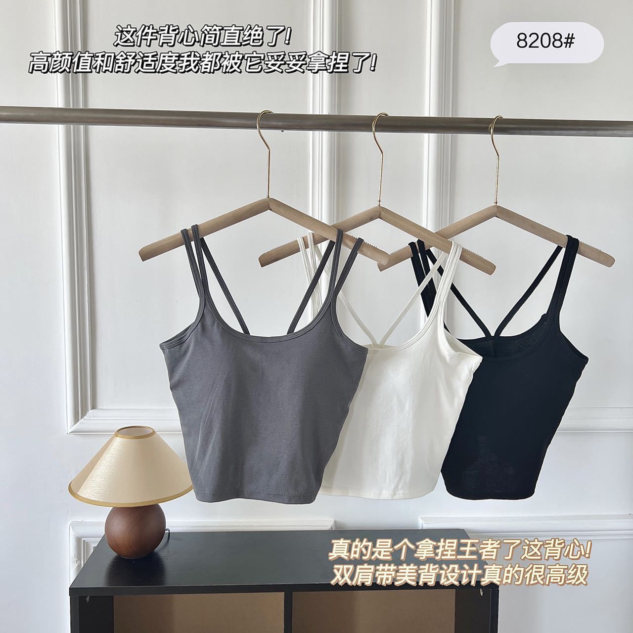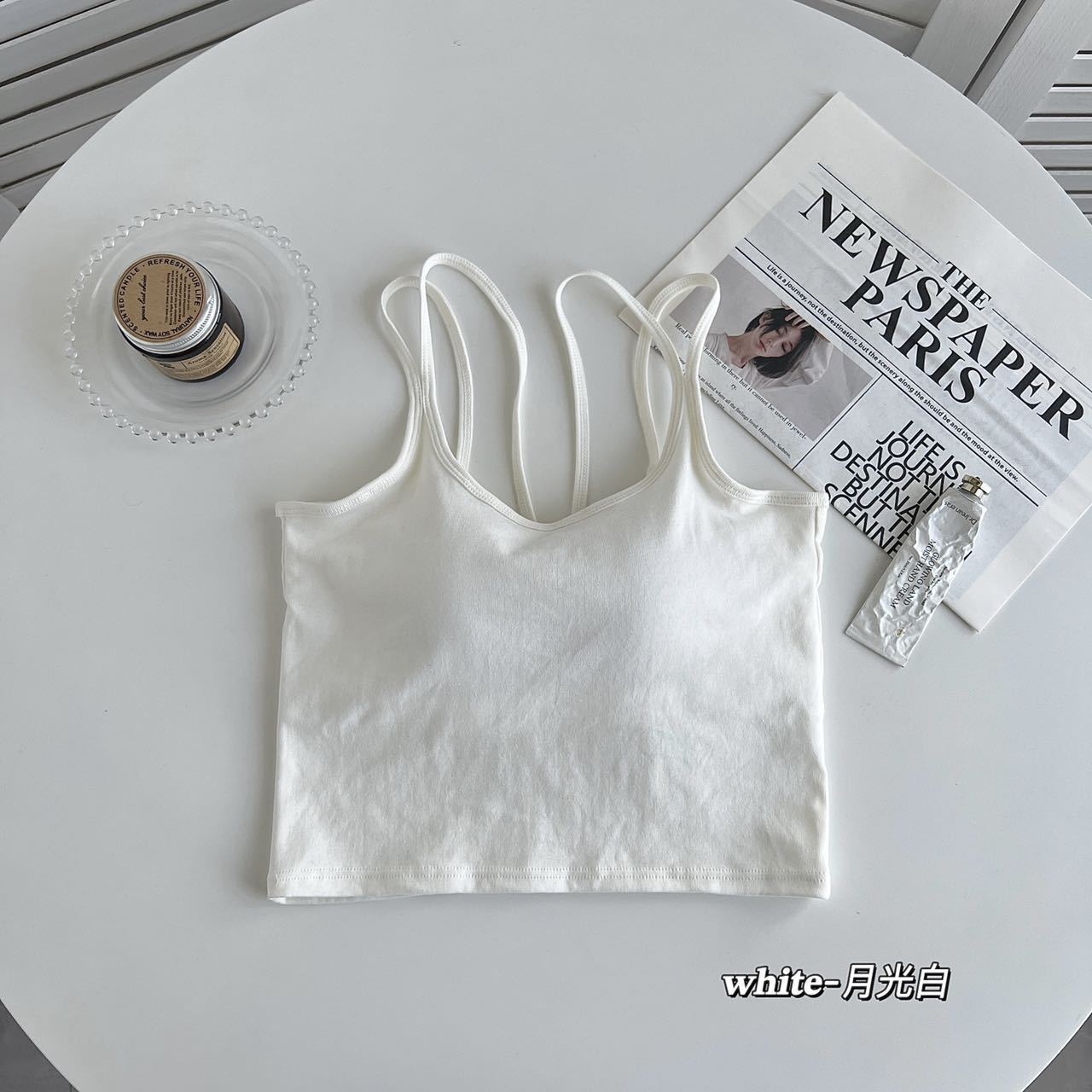 Zhao Rusi 같은 스타일의 흰색 슬링 조끼 가슴 패드 여성의 여름 외부 아름다운 뒷브래지어 원피스 내부 민소매 탑스토어 가기