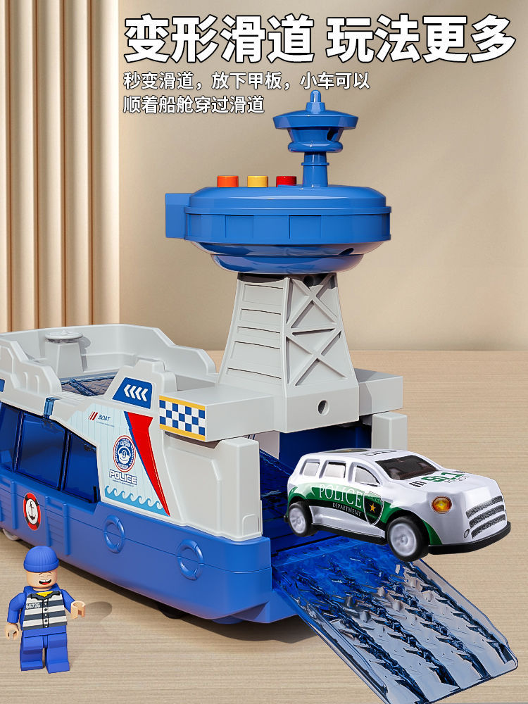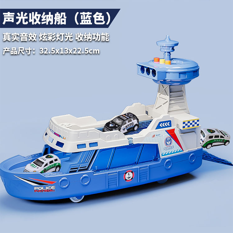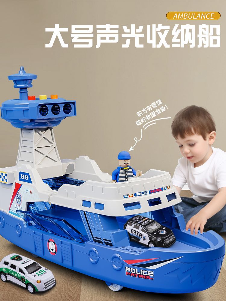 • 대형 소리와 빛 저장 바다 경찰선 [무료 자동차 3대 + 인형 5개]