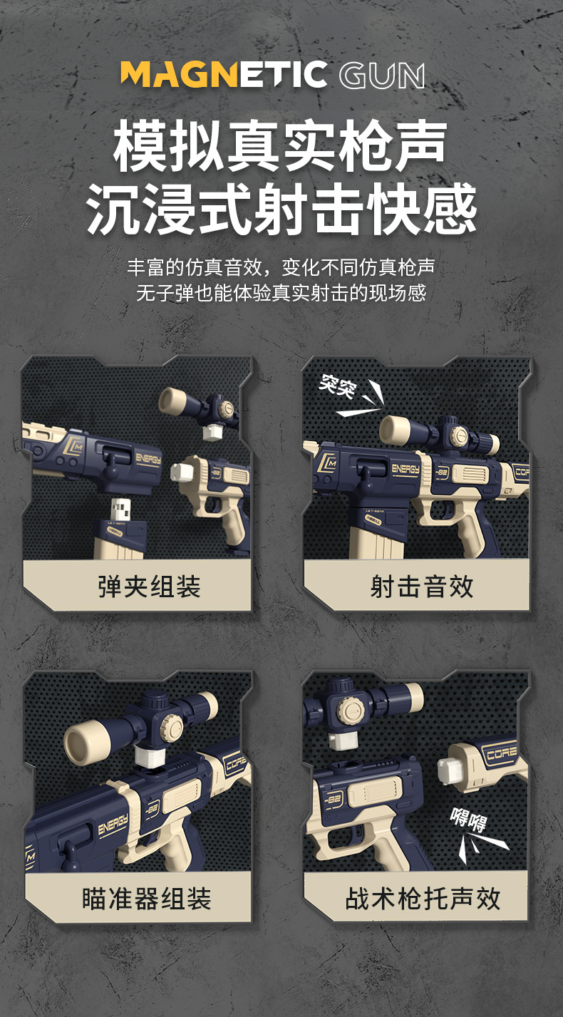 자기 장난감 총 창조적 인 다양한 모양 기관단총 시뮬레이션 전기 음향 효과 어린이 생일 선물 하이 엔드