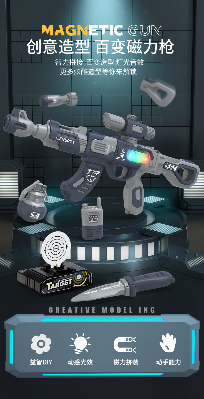 자기 장난감 총 창조적 인 다양한 모양 기관단총 시뮬레이션 전기 음향 효과 어린이 생일 선물 하이 엔드스토어 가기