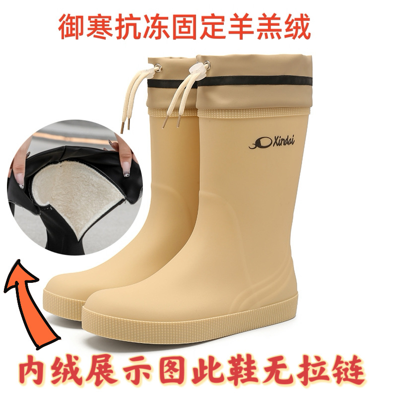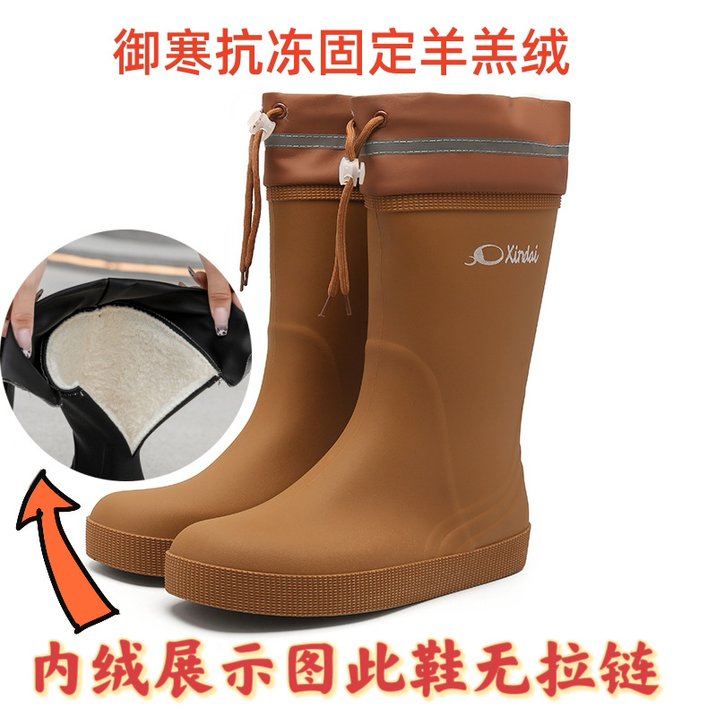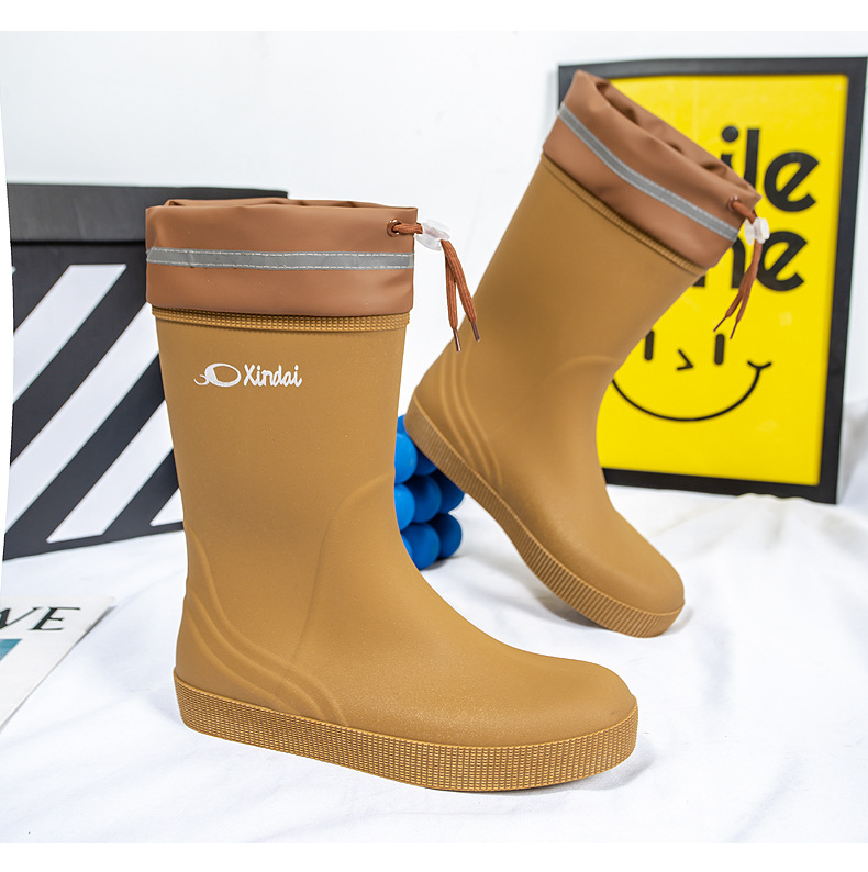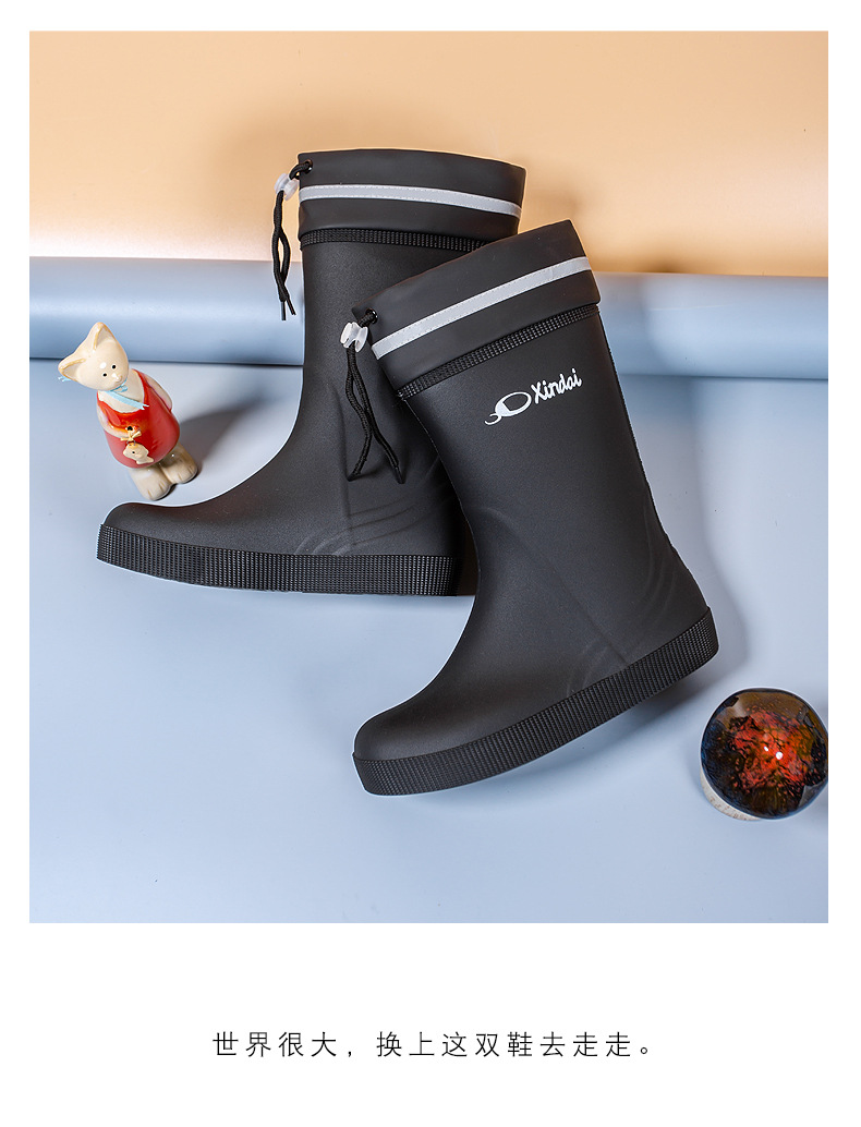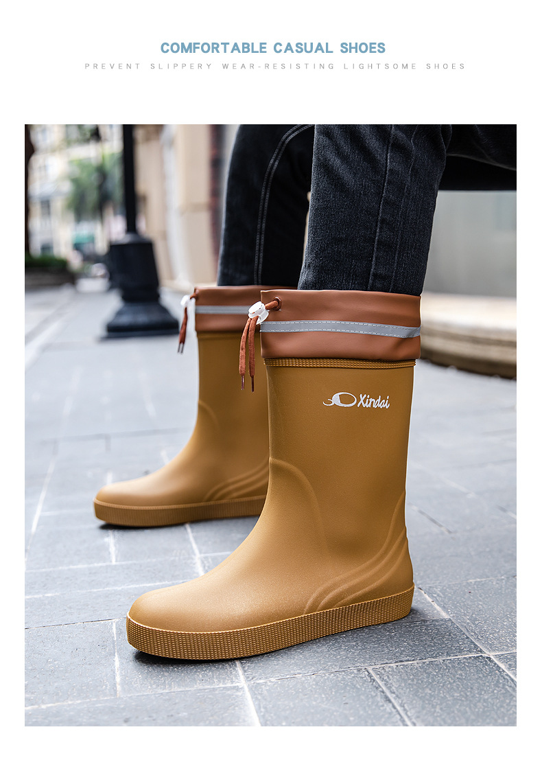 일본 및 한국 국경 간 특집 중앙 배럴 장화 남성 유행 커플 방수 벨트 남성용 레인 부츠 미끄럼 방지 수화