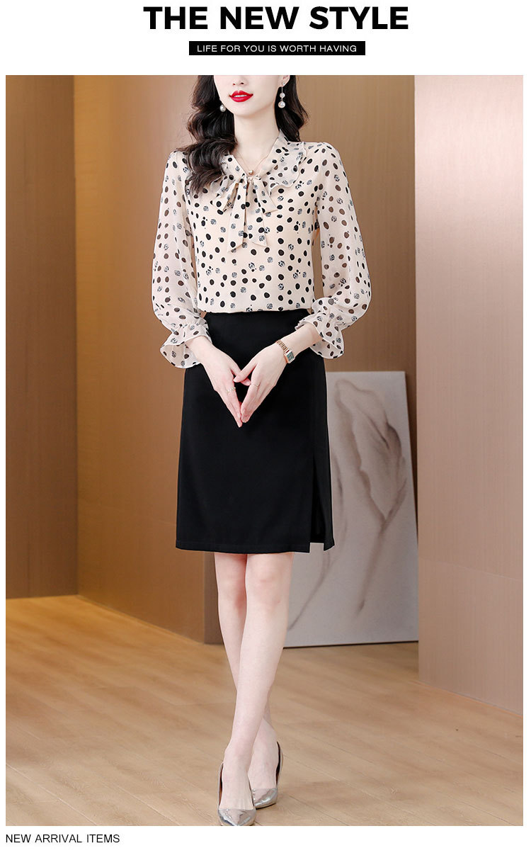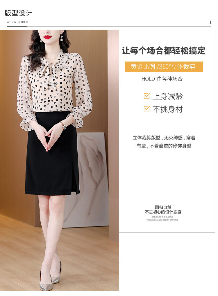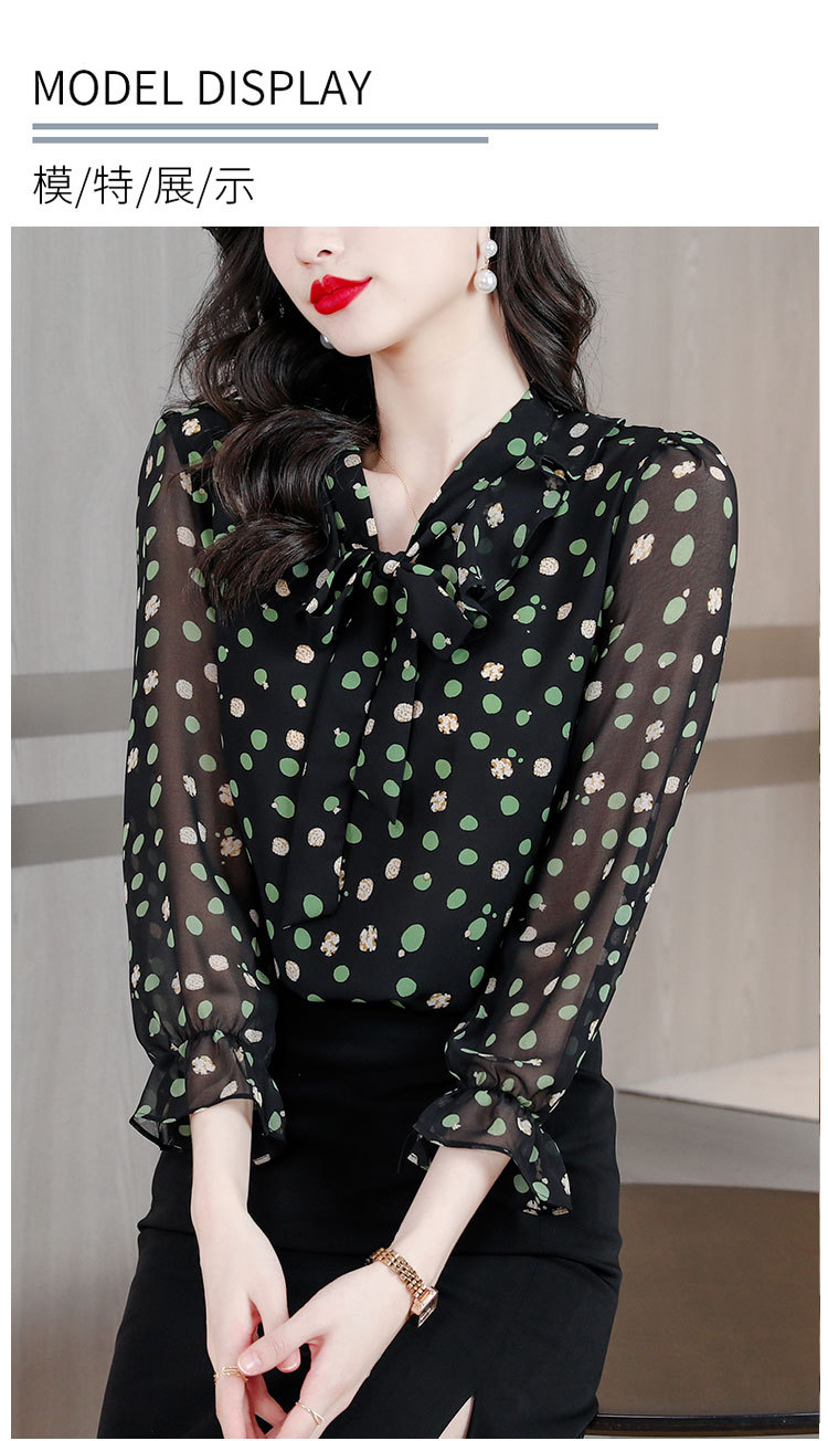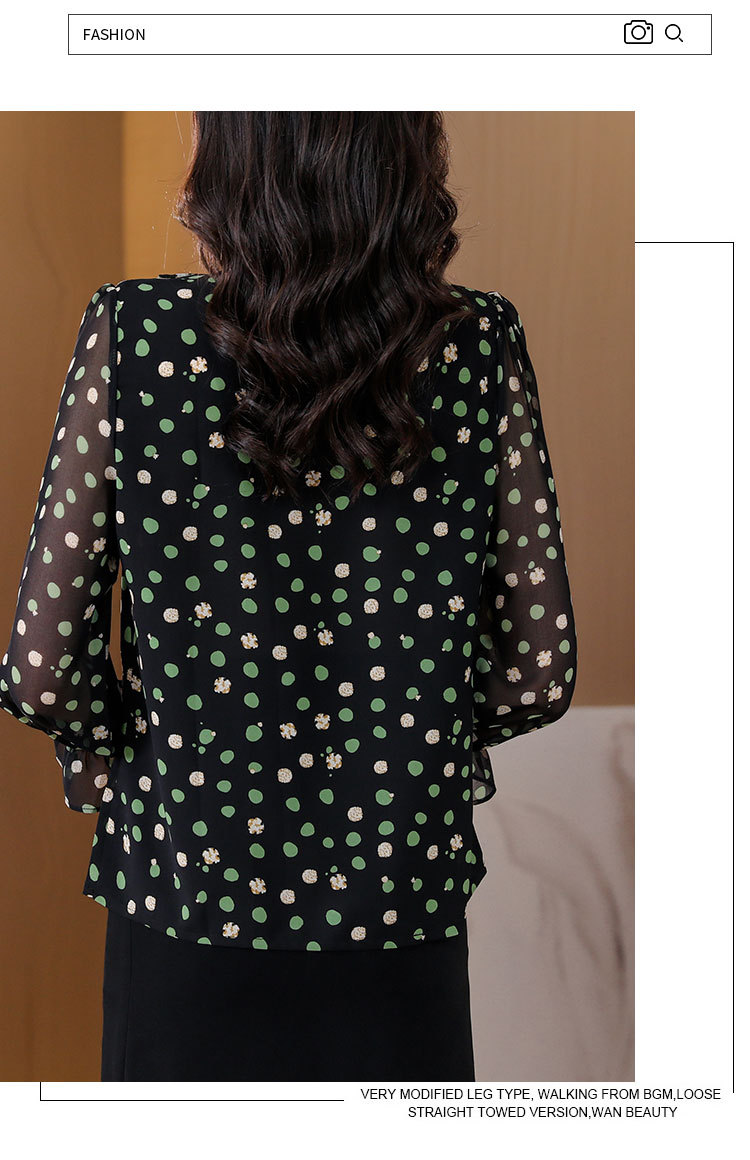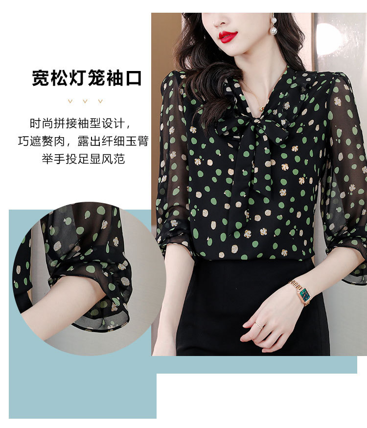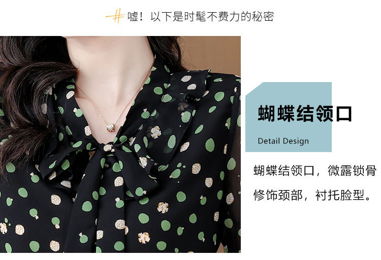 봄과 여름 2024 여성을위한 프랑스 스타일의 고급 러플 연령 감소 폴카 도트 리본 쉬폰 셔츠 새로운 플러스 사이즈 작은 셔츠스토어 가기