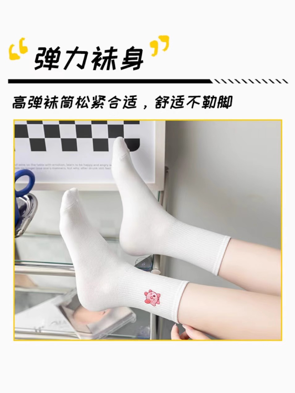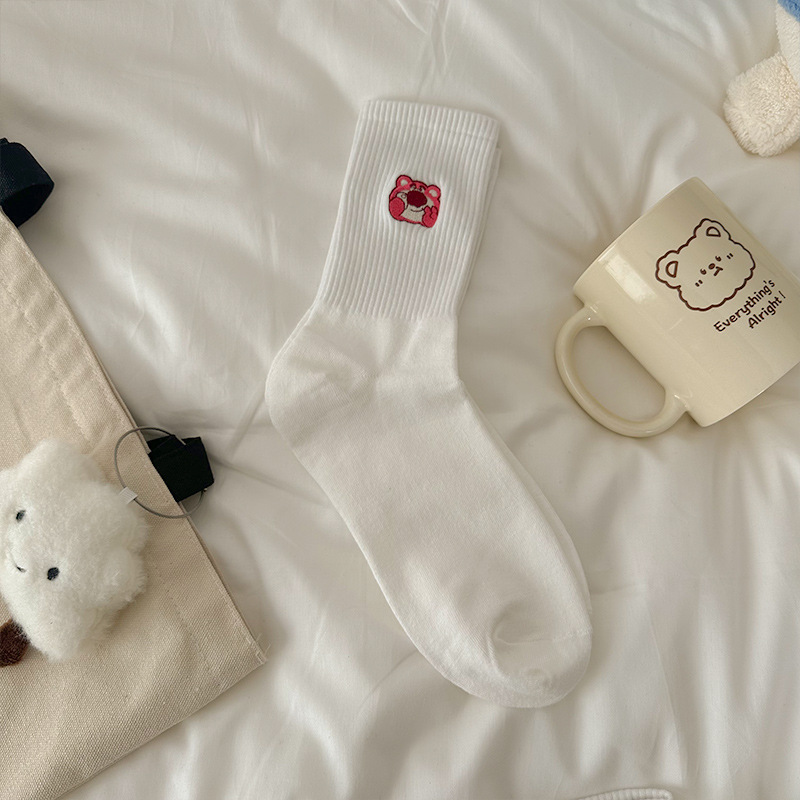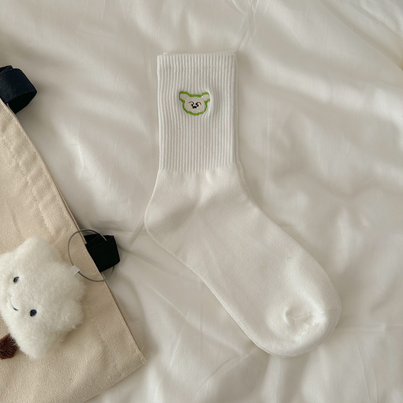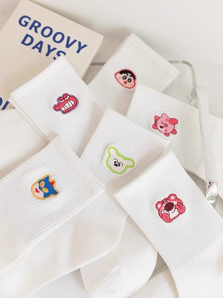 흰색 양말 여성 튜브 양말 면화 봄과 가을 일본 학술 스타일 만화 여름 얇은 자수 스포츠 스타킹