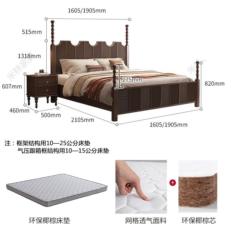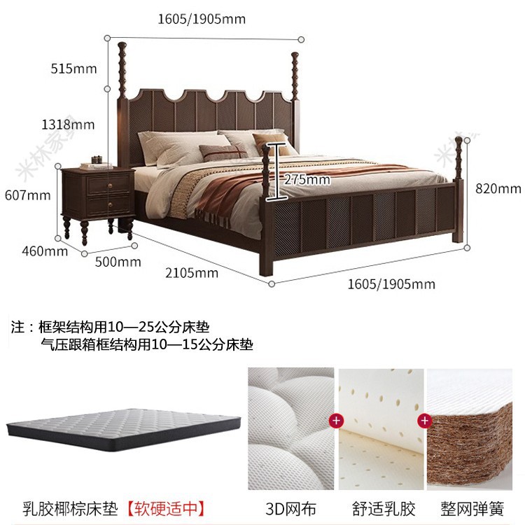 • 침대+침대 옆 탁자*1+ 20cm 스프링 라텍스 매트리스