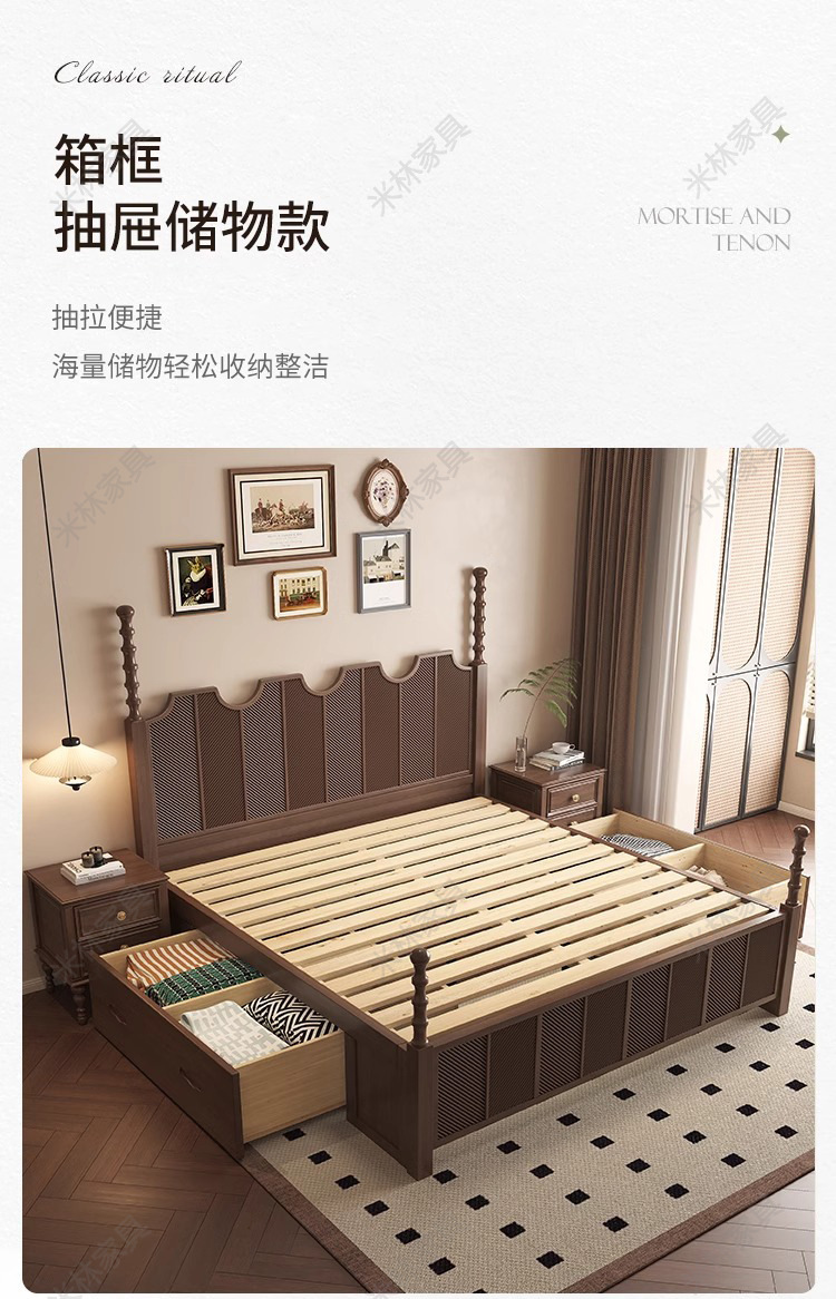 프렌치 레트로 원목 침대 마스터 침실 더블 침대 1.8m 심플 모던 아메리칸 라이트 럭셔리 1.5m 프린세스 에이미 침대스토어 가기
