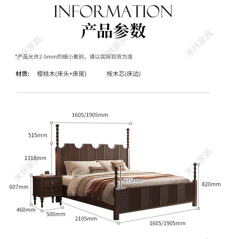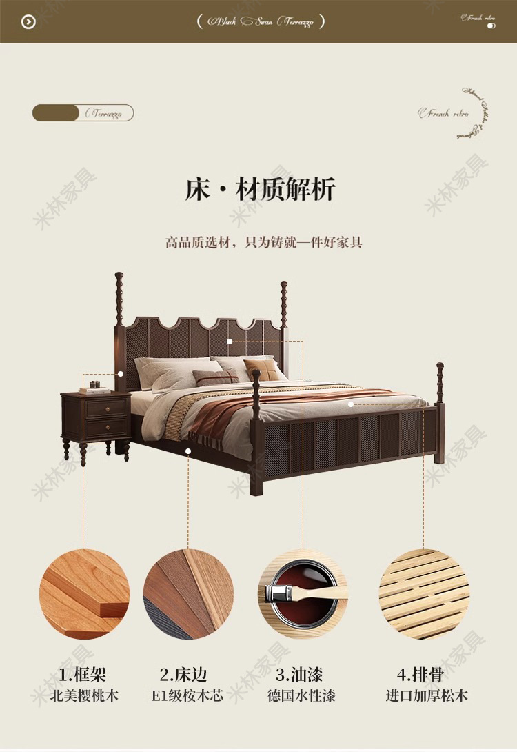 프렌치 레트로 원목 침대 마스터 침실 더블 침대 1.8m 심플 모던 아메리칸 라이트 럭셔리 1.5m 프린세스 에이미 침대