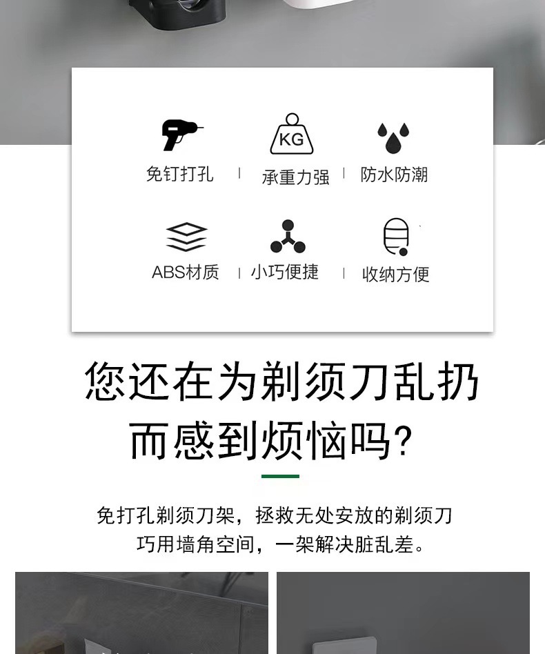 전기 면도기 랙 천공되지 않은 전동 칫솔 홀더 벽에 장착 된 면도기 보관 랙 충전 구멍 제조업체
