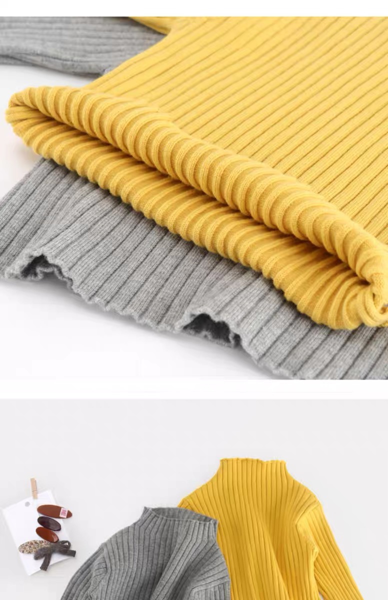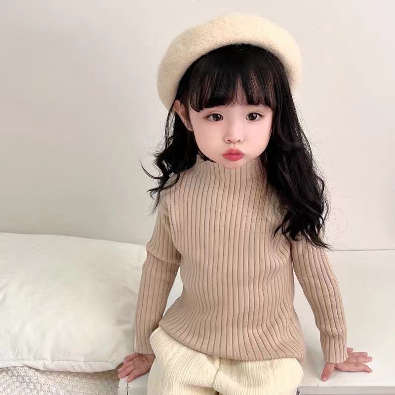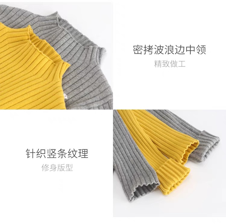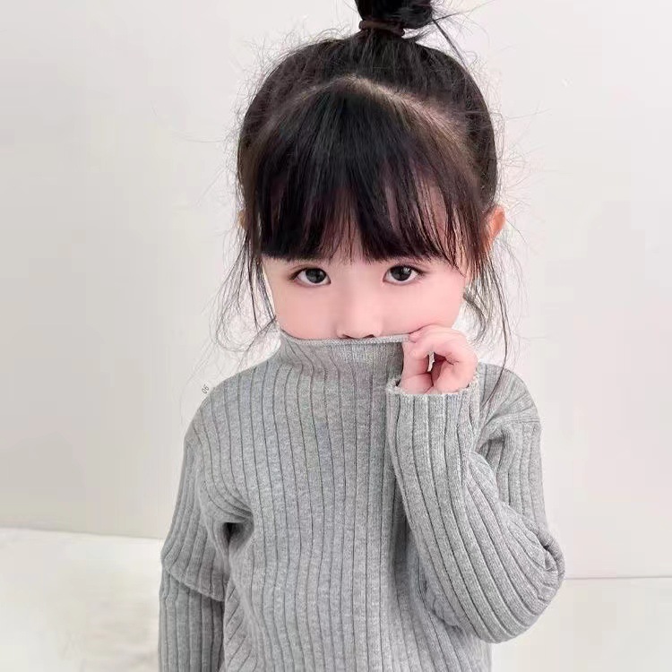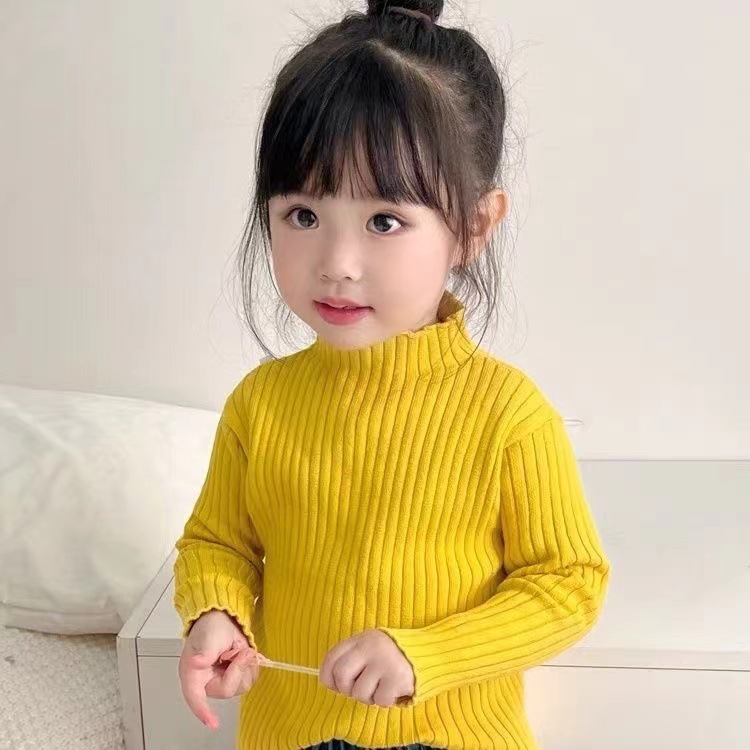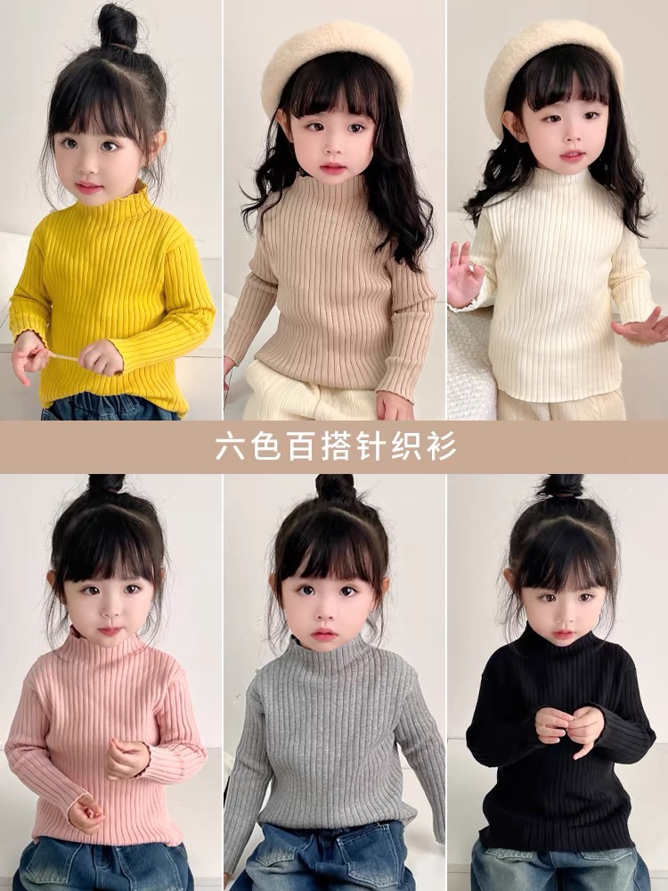 소녀베이스 셔츠 봄과 가을 2024 새로운 풀오버 귀여운 아기 봄 긴 소매 반 높이 칼라 웨스턴 스타일 니트 스웨터