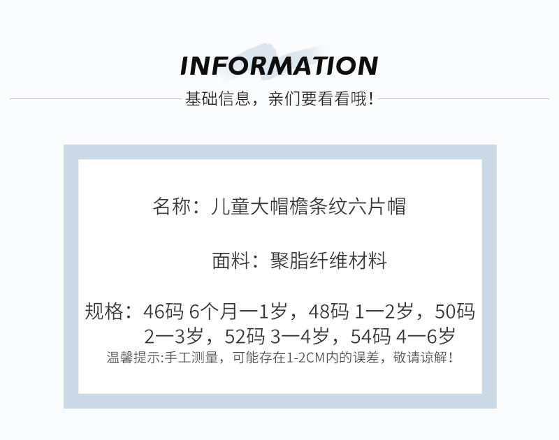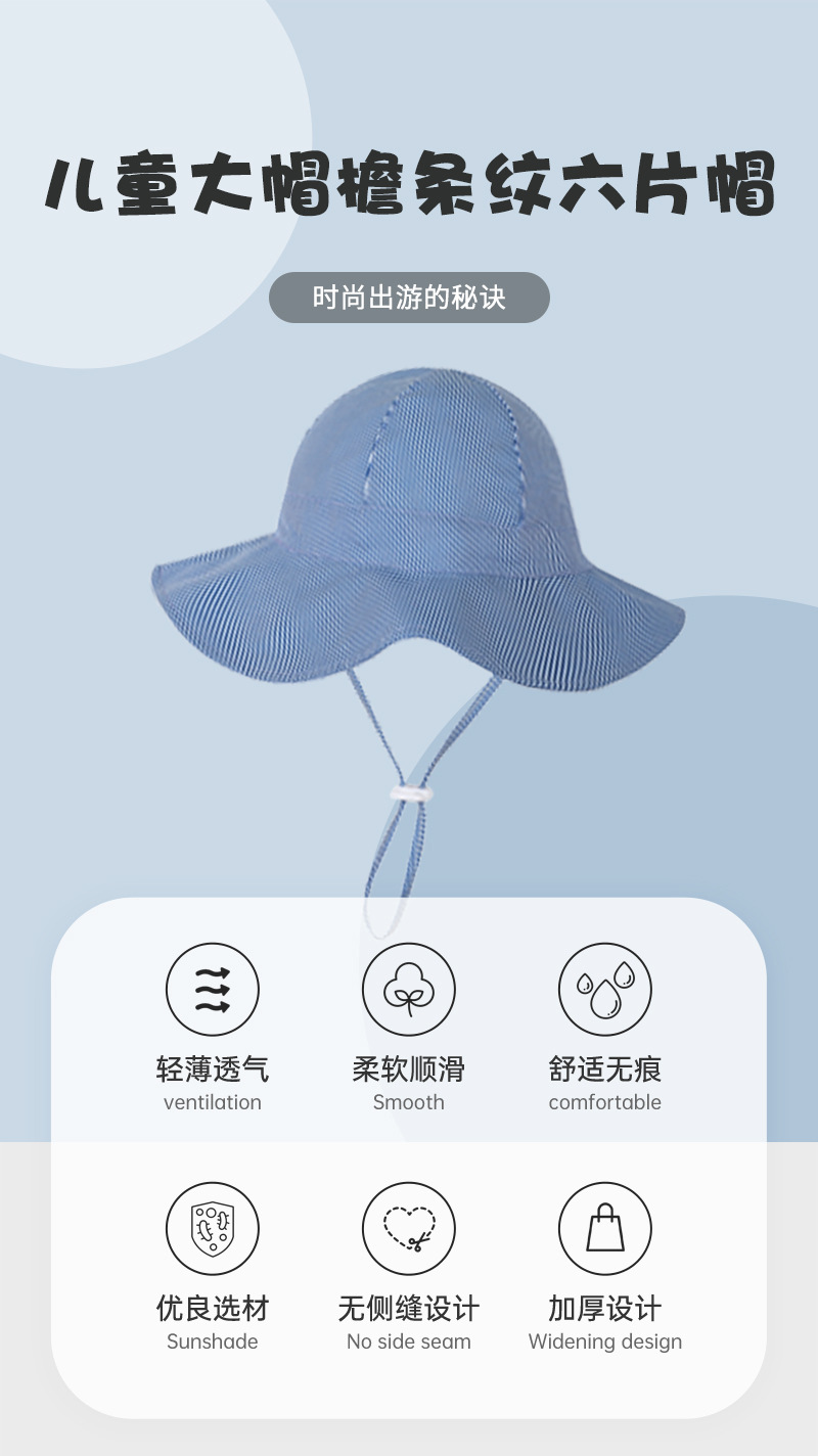 국경 새 2024 봄과 가을 어린이 큰 가슴 줄무늬 모자 여섯 조각 모자 아기 태양 모자 아기 태양 보호 모자스토어 가기